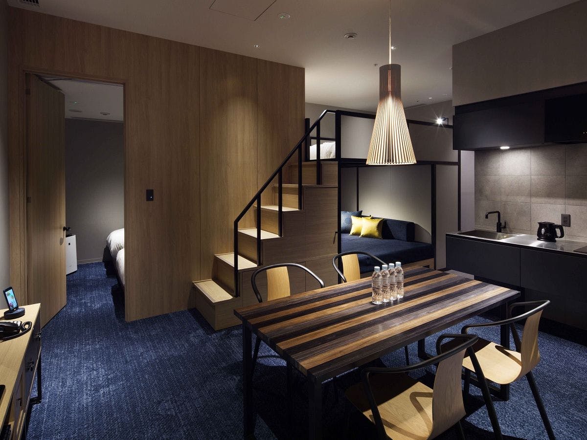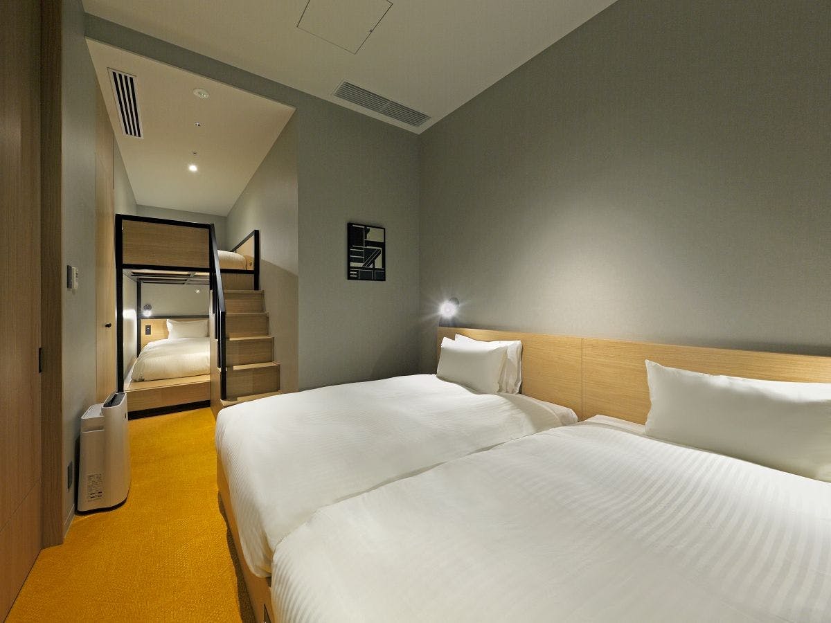 シングルベッド2台と2段ベッドを備えたベッドルーム、リビング・ダイニング、フルキッチン付きの客室です。ご家族やご友人同士など、大切な人と思い思いのホテルステイをお楽しみください。