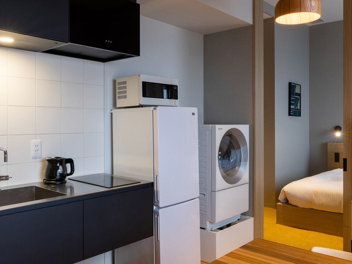 キッチンや洗濯機が備わり、まるで我が家のようにお寛ぎいただける滞在型ホテル。客室は13階以上の高層階に位置しており、都会の美しい景色を一望できます。上質な空間で優雅なひとときをお楽しみください。