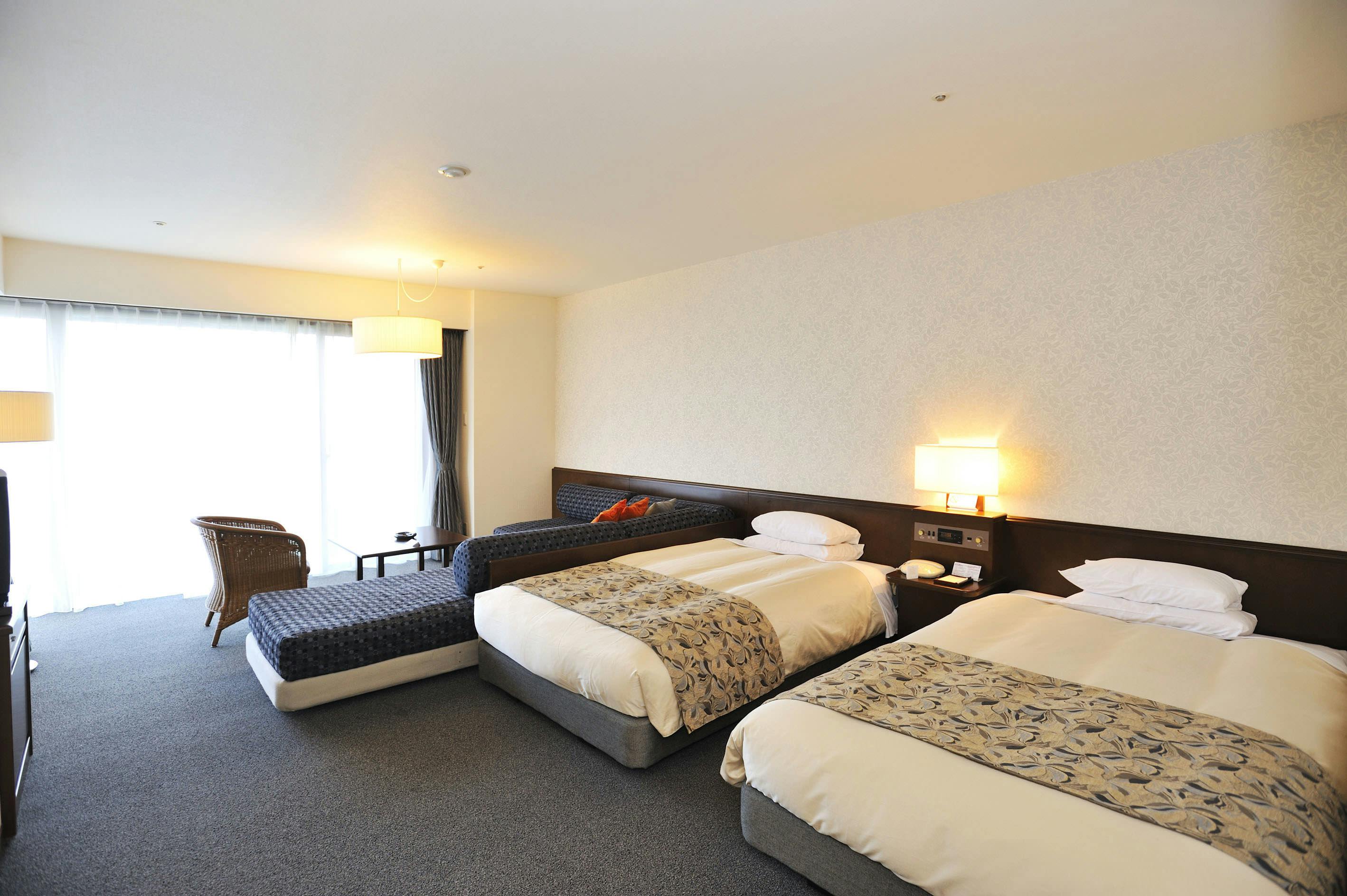 ベッド2台+ソファーベッド2台※3名様以上の際はソファーベッドをご利用ください。(組み替えはお客様にお願いしております)バス・トイレ付、加湿器付空気清浄機、無料Wi-Fi