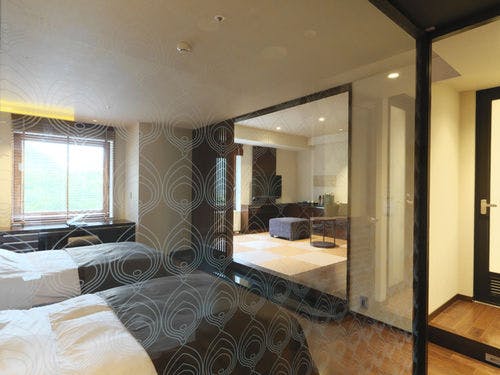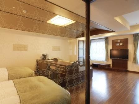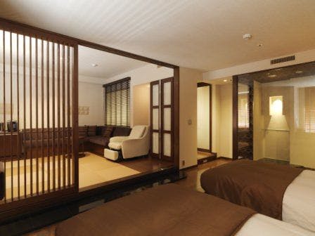 ワンちゃんと一緒にお泊りいただける42平米のDXツイン。