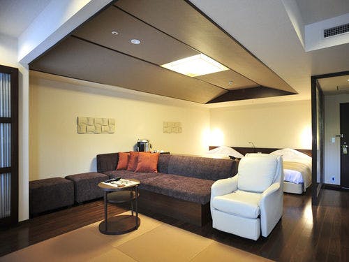 室内の段差をなくし、それぞれの間口を通常より広く設計した、バリアフリー対応のデラックス和洋室(52平米)。
