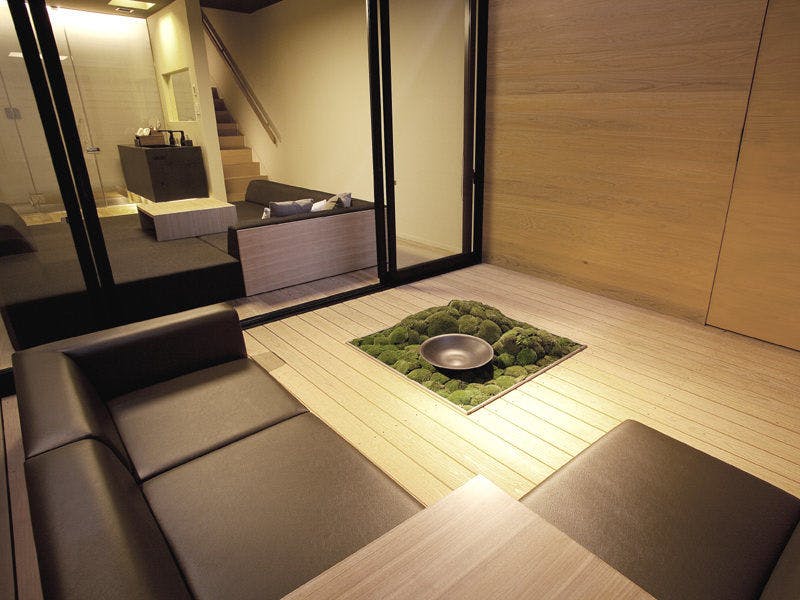 ゆったりとした贅沢なひとときをお過ごしいただける100平米を超えるスイートには、和の趣を大切にした茶室と美しい庭園へと続く広々としたテラスがあります。また、檜葉(ヒバ)の木の浴槽を設えたバスルームの他に離れの奥庭を彷彿とさせる開放的な石造りのアウトバスのあるカンラ京都の集大成となる京都の風情を表現した客室です。