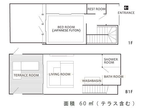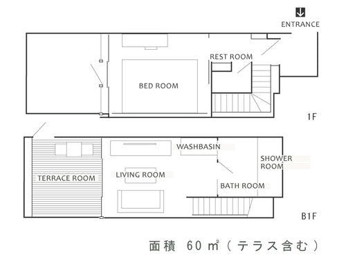 ○テラスを含め広さ約60平米のメゾネットタイプ
