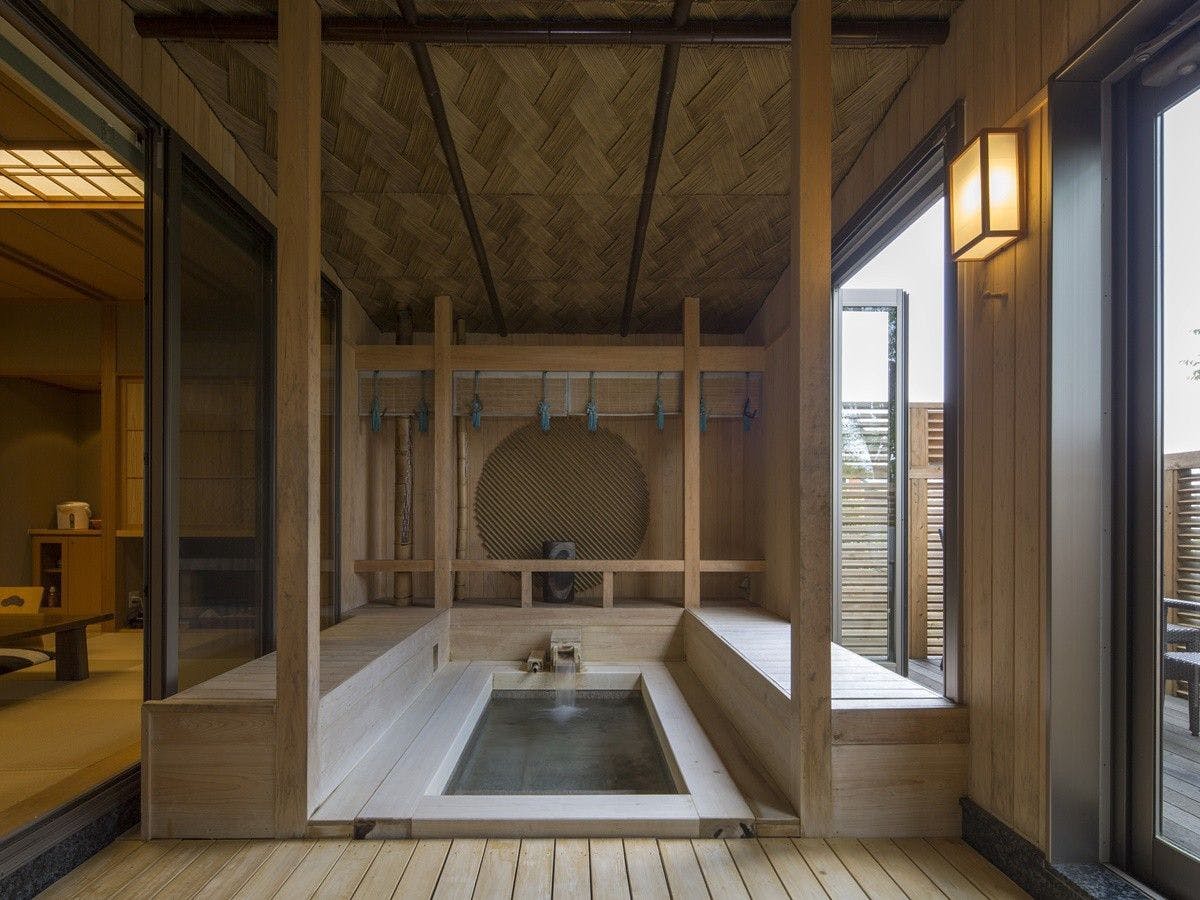 <お部屋食確約>全室離れとなっており、全客室には趣の異なる露天風呂または露天風呂を完備しており、プライベートを重視する宿です。