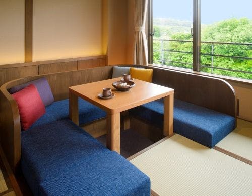 お部屋の窓側には、ゆりかごのような掘り炬燵「えんつこ炬燵」を取り入れ、ゆっくりとお過ごしいただけます。
