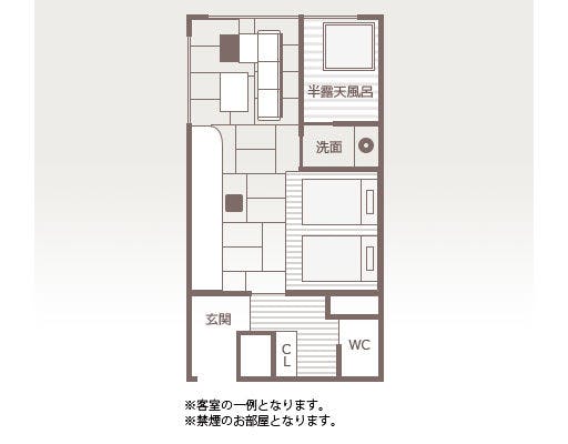 「青森ゆかりの設えと半露天風呂で寛ぐ空間」
