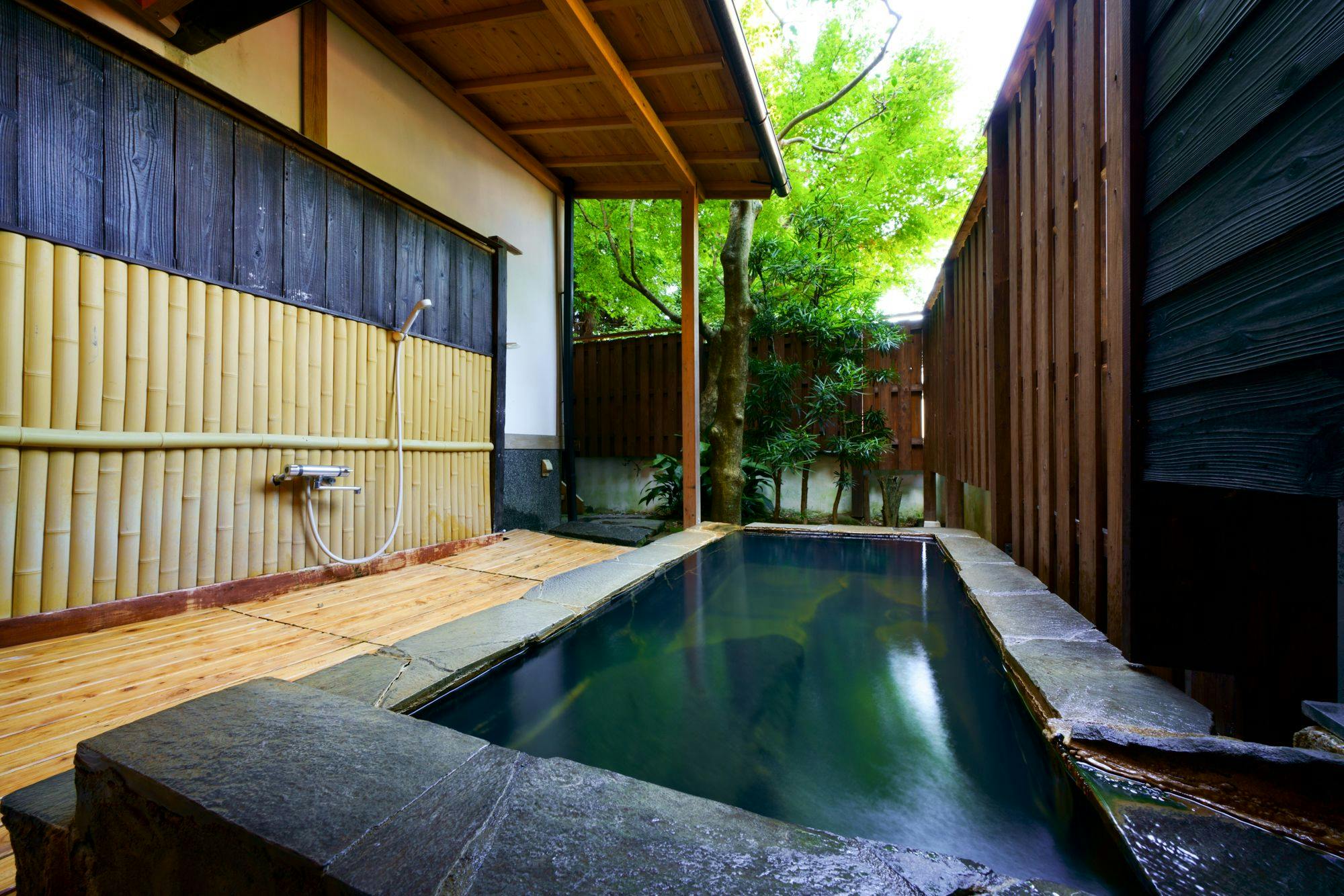 露天風呂付き戸建離れの純和室。戸建離れ2棟。それぞれにタイプの異なる岩露天風呂があり、全11室の中でも人気の2部屋です。■ご 案 内 ・ サ ー ビ ス■・全室離れでプライベート重視の造り。・夕食、朝食ともにお部屋食・イン時、抹茶サービス(※午後7時インまで)・アウト時、コーヒーまたは柚子茶サービス・1室1部、読売新聞朝刊サービス