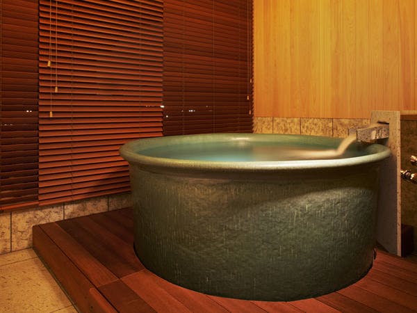 ・客室内バスルームは、本館特別室専用仕様。最上階から外の景色をご覧いただきながら高級バスタブJAXSON製の内風呂でご入浴いただけます。