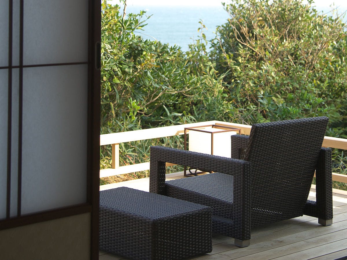 海に面する縁側で眺める景色にお伴するのは、読みかけの本と冷えたビールが似合うお部屋です。八角形の露天風呂は石造りとなっており、湯舟に腰掛ければ潮風が熱った肌に気持ちが良い。