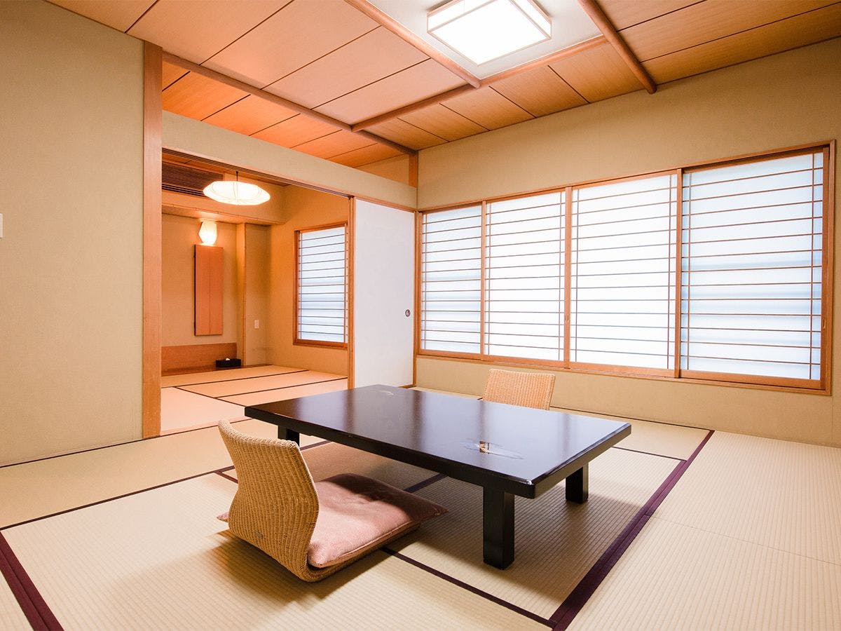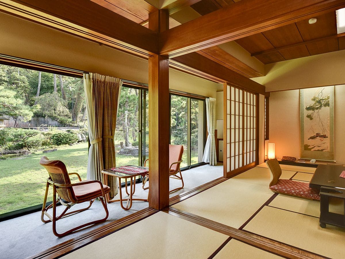 1階 松の館に並ぶ和室(8畳+6畳)は、お部屋から庭園を眺められます。