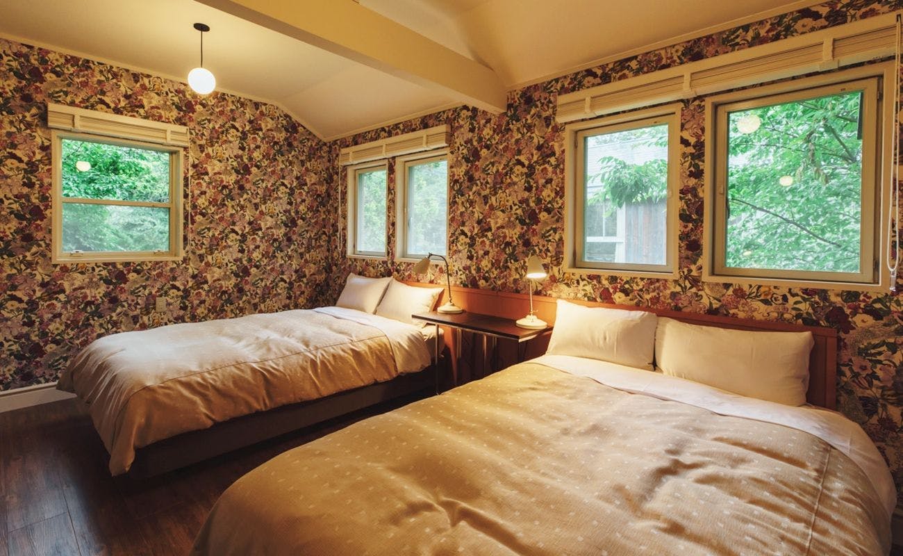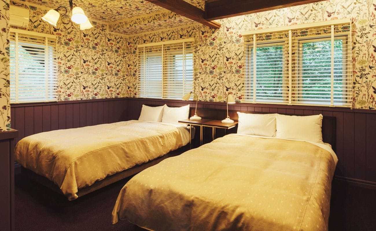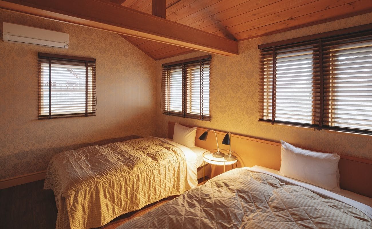 ※5名様で御宿泊の場合は2階和室スペースにお布団をご用意させて頂きます。(4ベッド+1布団)