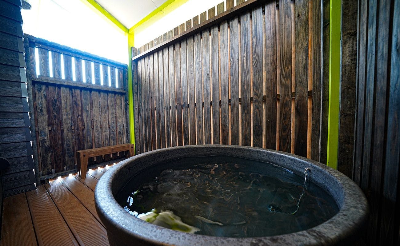 リビングダイニング、洋室×2、バス、トイレ、テラス、個室露天風呂