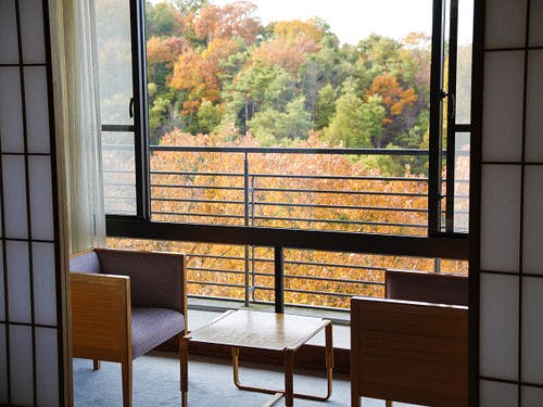 黄金に、真紅に、あでやかに山を染める紅葉のように、彩り豊かなひとときを彷彿されるお部屋「湯山もみじ」。
