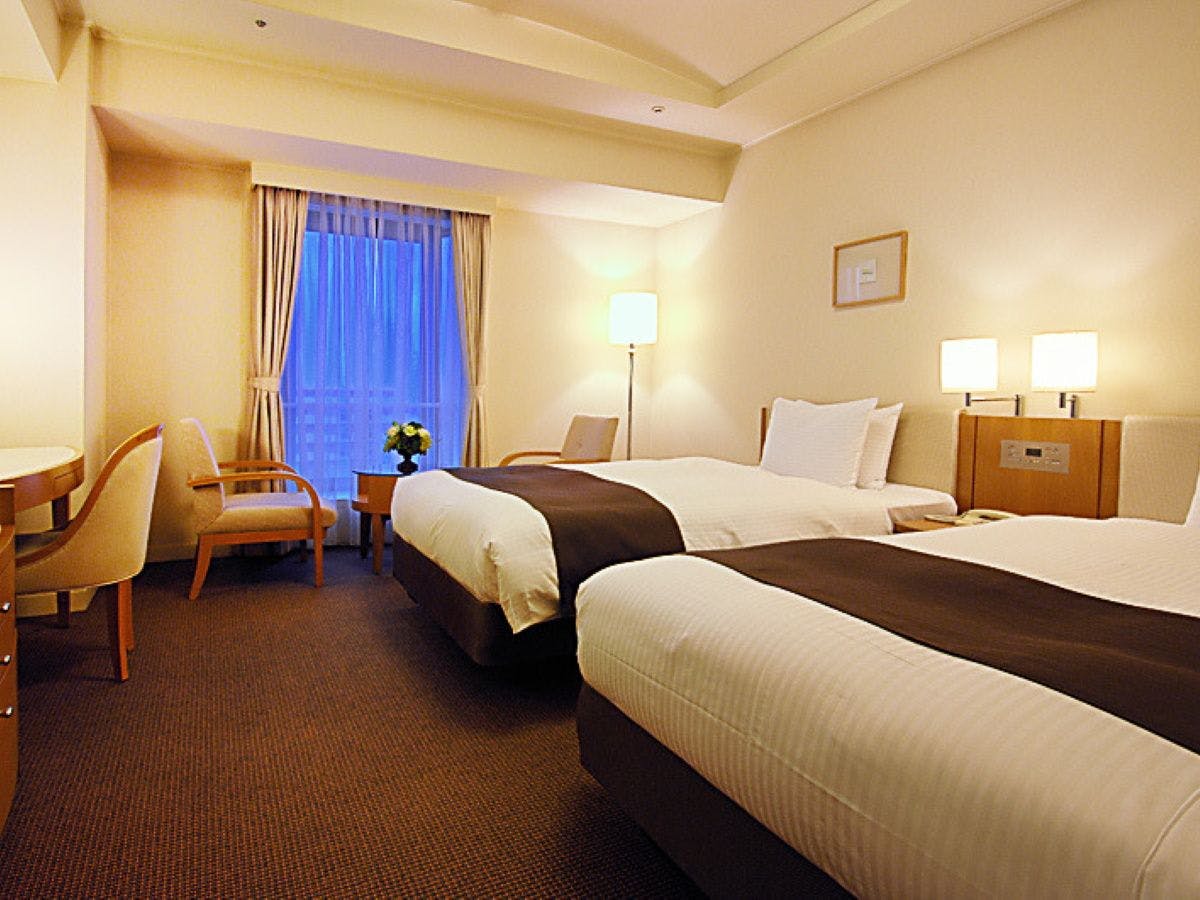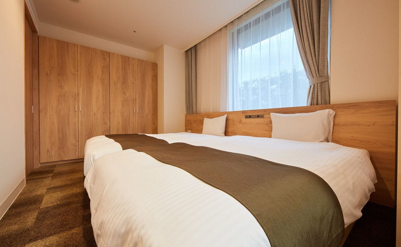 54平米/ベッド幅120cmシモンズ社製ベッド2台/デュベ/LAN無料・VPN(有料)/シャワートイレ/60インチテレビ