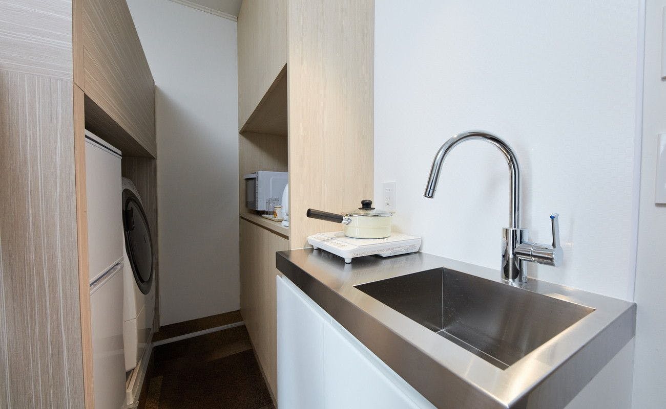 充分な生活空間も確保されており、女性の1 人住まいにも 最適なルーム仕様となっております。長期滞在に欠かせないアイテムを完備。