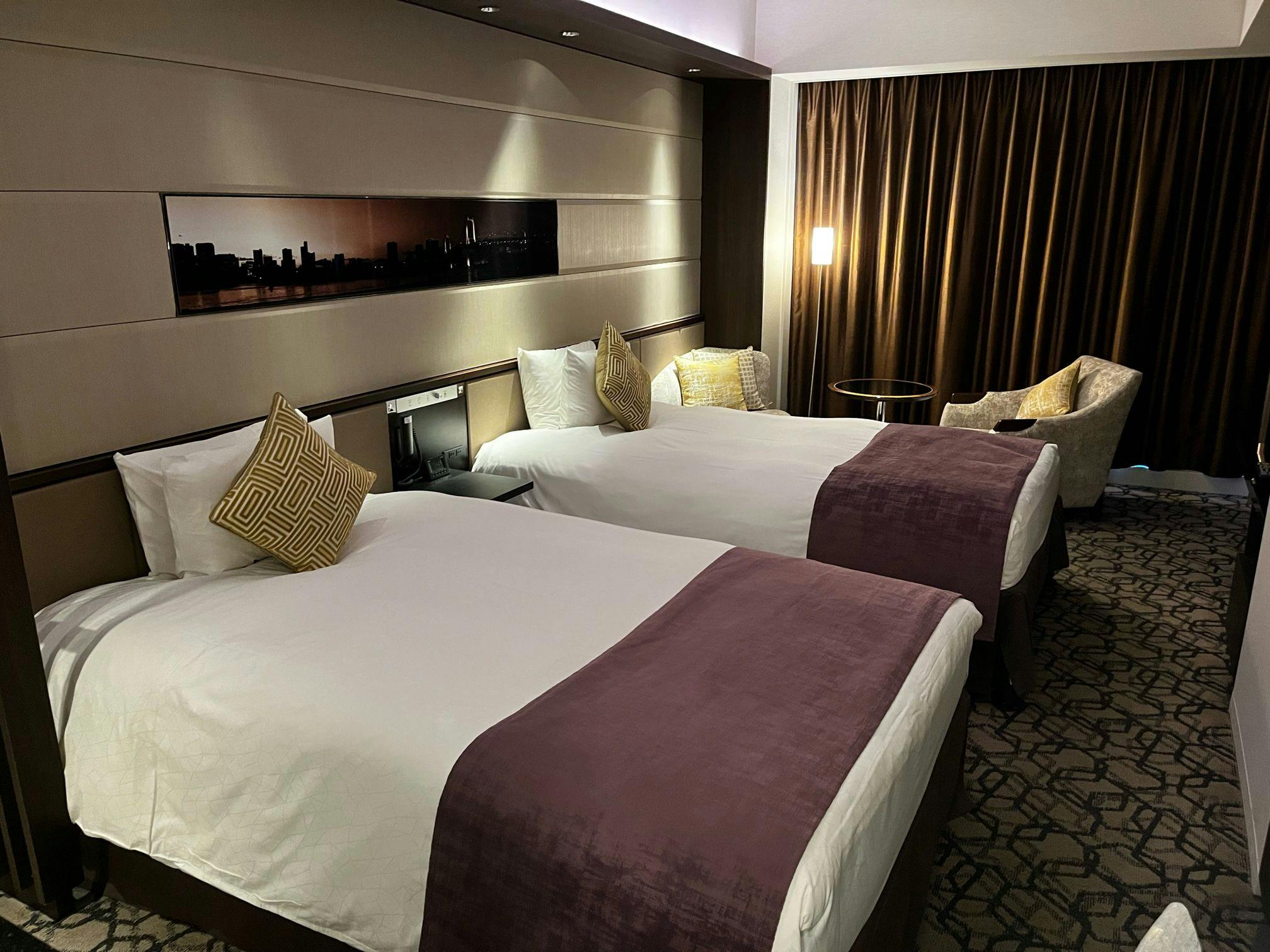 加湿空気清浄機(ダイキン) ・ デスクスタンド ・ マルチタイプ携帯電話充電器 ・ 消臭スプレーミネラルウォーター・セーフティボックス・ズボンプレッサー■広さ:20平米 ■ベッドサイズ:クイーンベッド(日本ベッド社・幅160cm×長さ195cm)