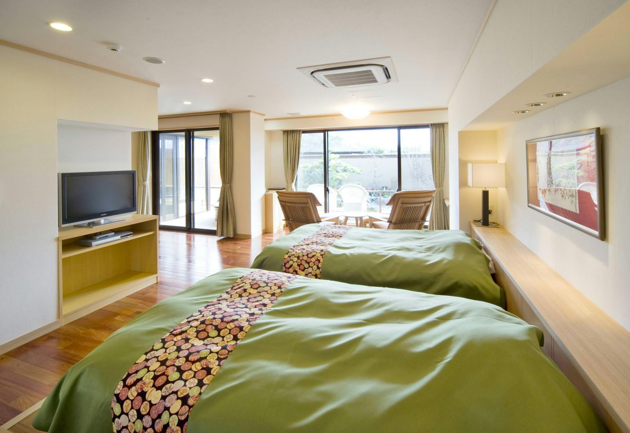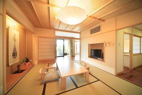 緑に囲まれて、落ち着いた純和風のお部屋です。ご家族・グループ全員が、一部屋でご宿泊されたいお客様にオススメです。2020年11月より室内禁煙