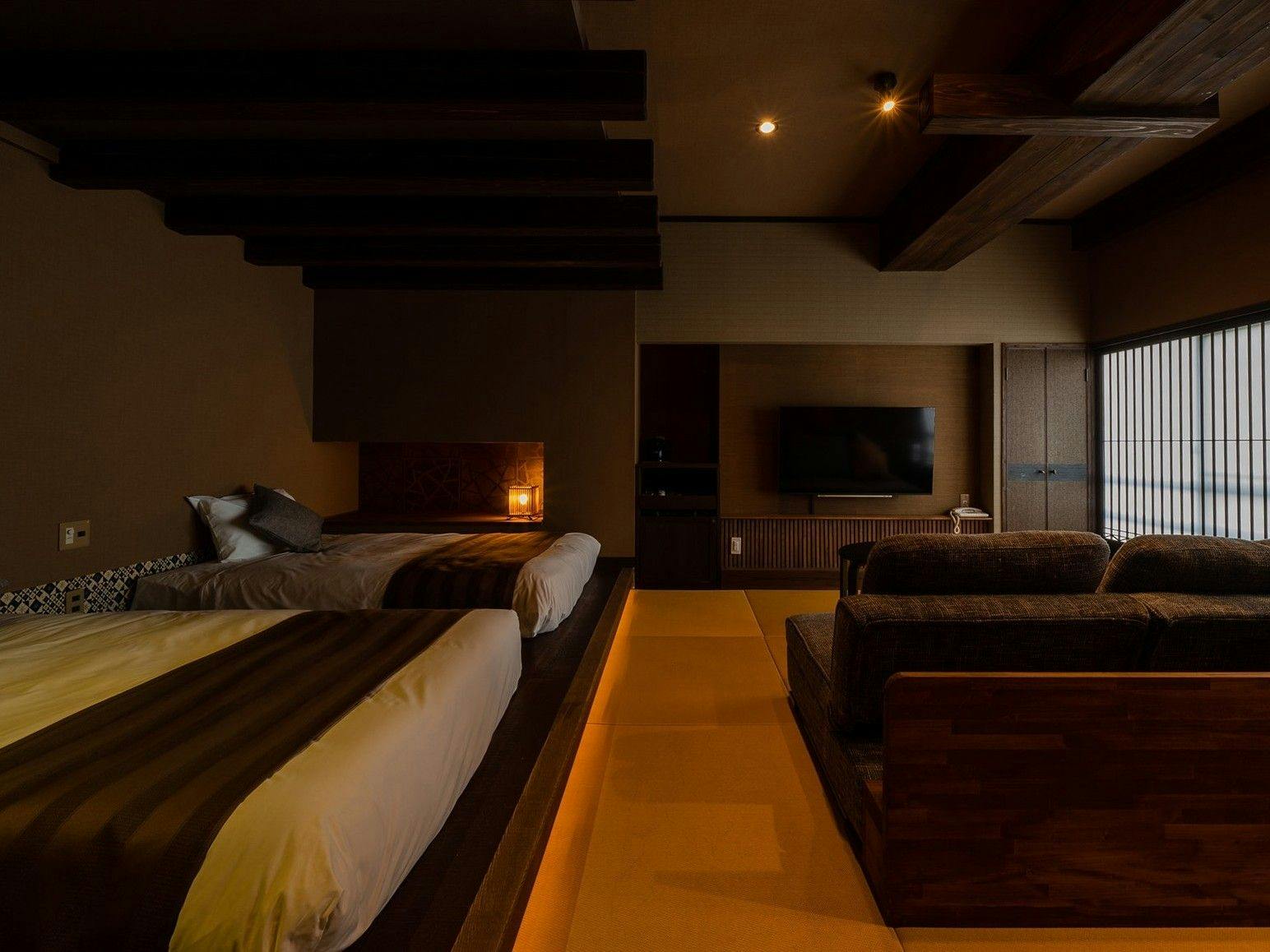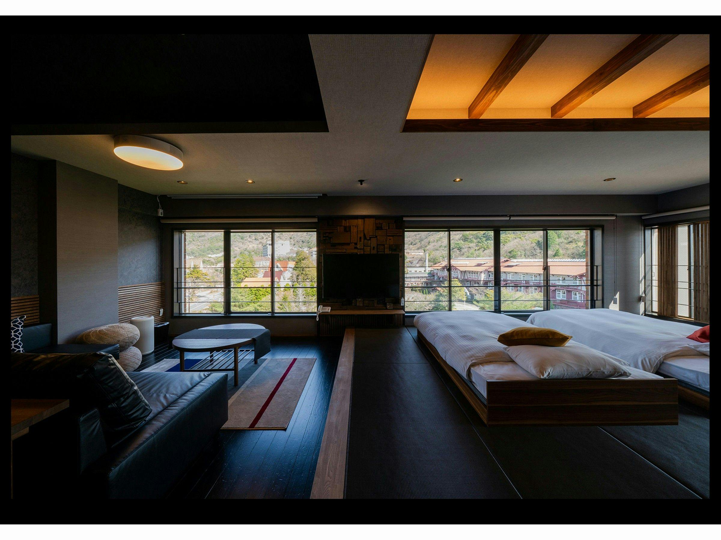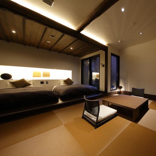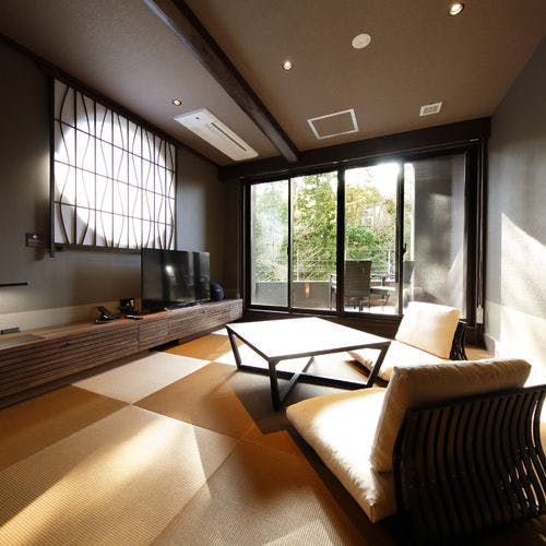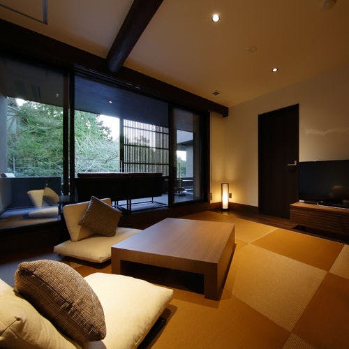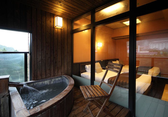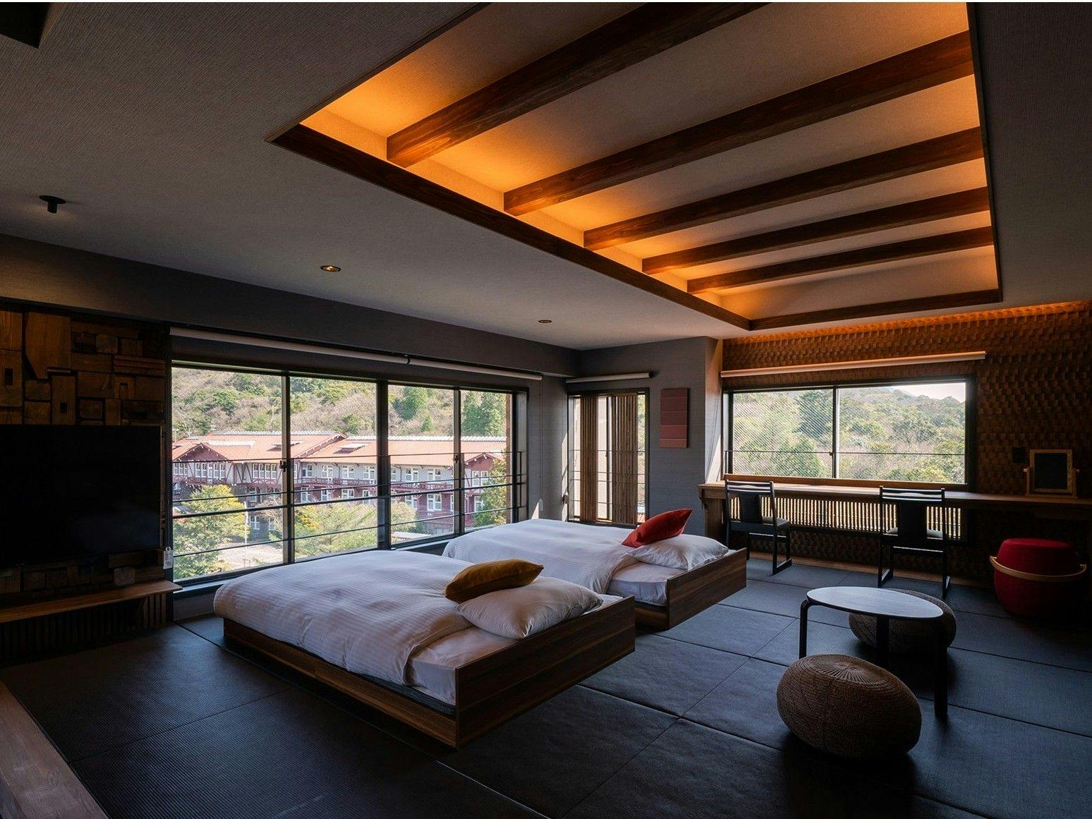雲仙福田屋に2017年にOPENした別館「山照-別邸-」。ラグジュアリーな源泉掛け流し露天風呂付の7タイプの客室。