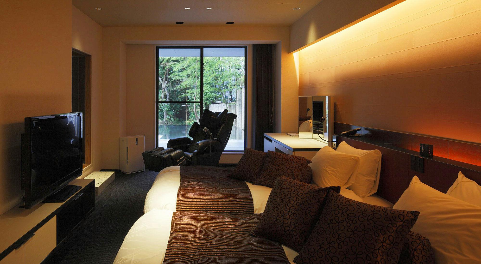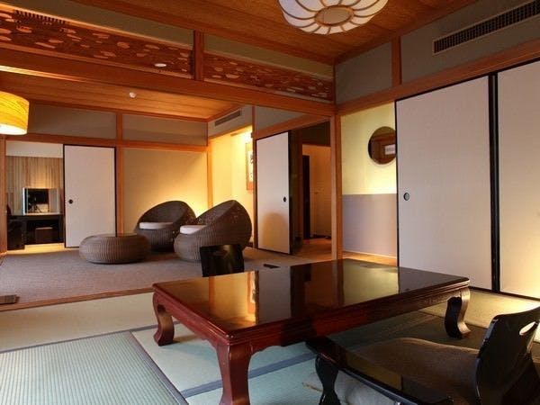 お部屋は3間のデラックススウィート仕様。マッサージチェアーも完備され日頃の疲れもリフレッシュできます。