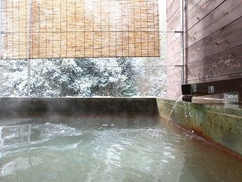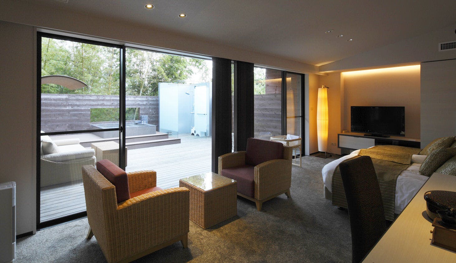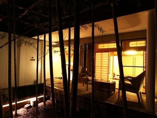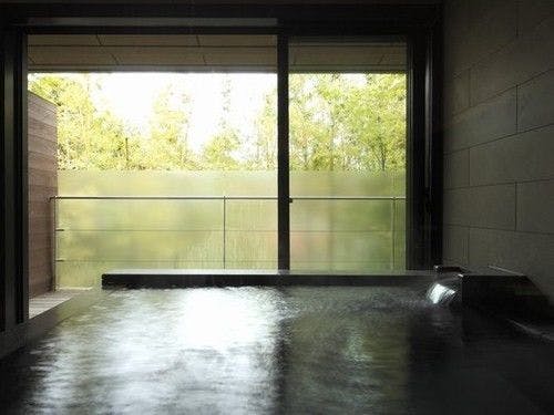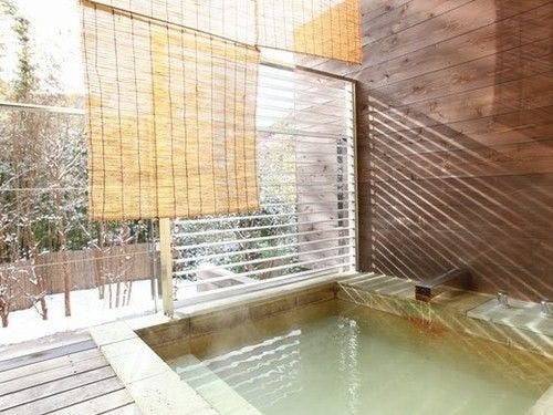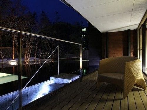 ライトアップされたヒメシャラをご覧頂きながらゆっくりとにごり湯の温泉をご堪能頂けます。湯上りにリビングでシャンパンを傾ける、そんな光景が似合うお洒落な露天風呂です。