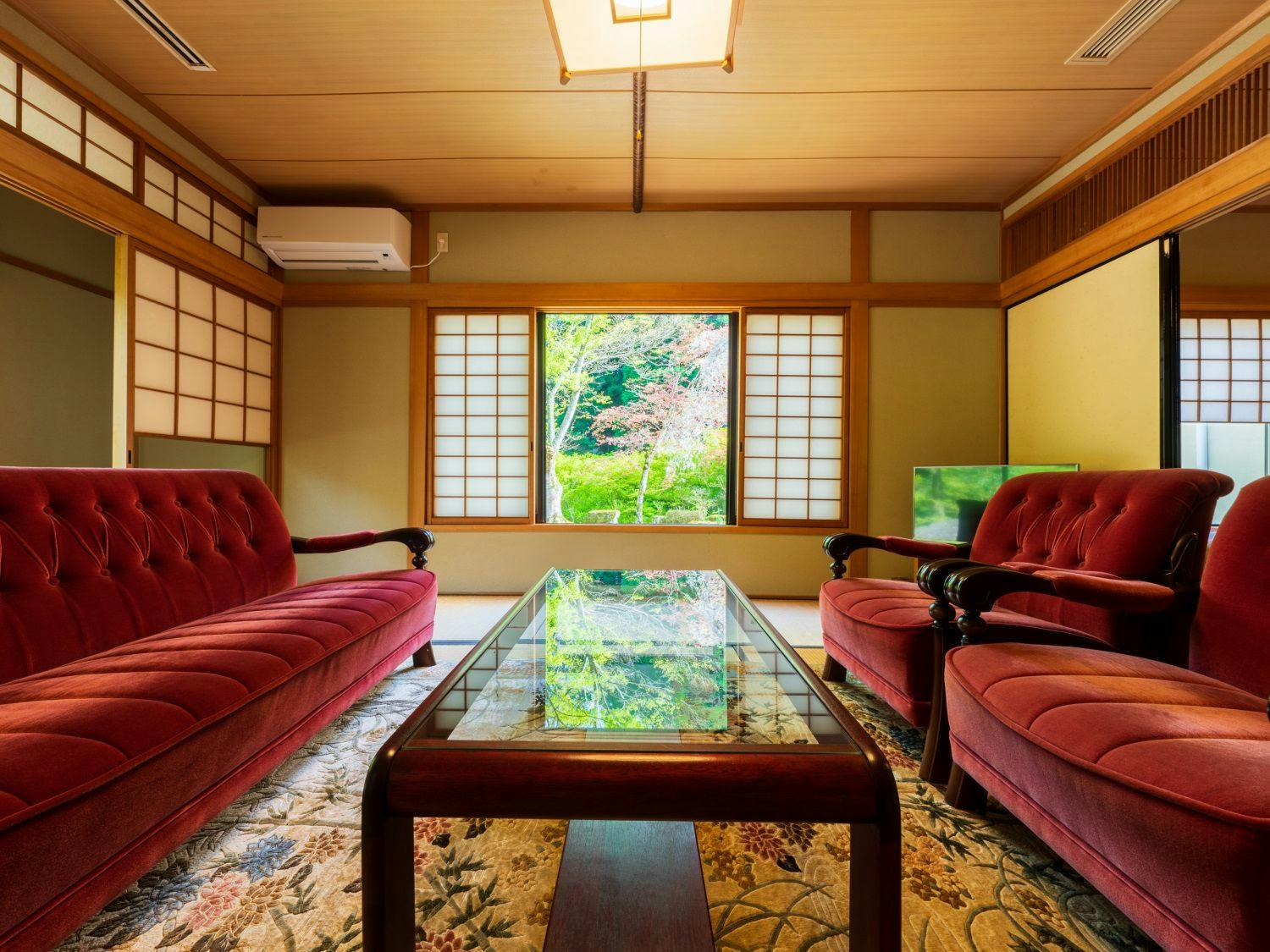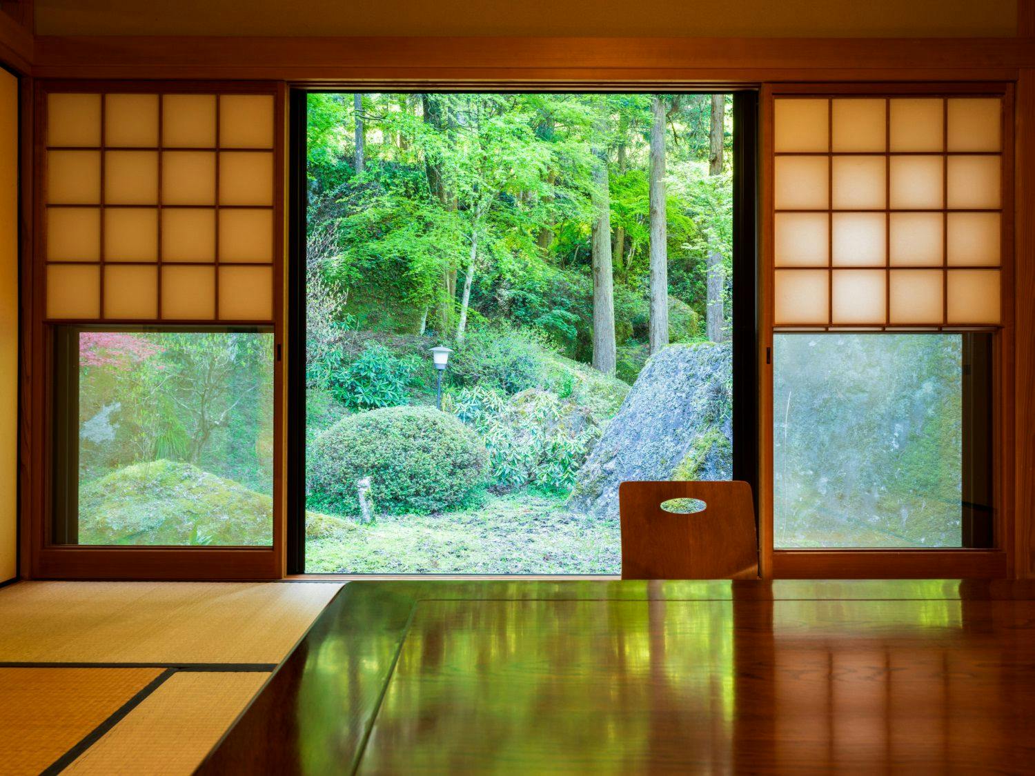 和の趣が心地良い客室。【バス・トイレ付】敷地内にございます、手入れされた中庭を囲むように建てられています。客室からは、巨石・奇岩・珍しい山野草が眺められ、四季それぞれの美しさを楽しむ事が出来ます。ご夫婦やご家族、ご友人と憩いの一時をお過し下さい。※大自然に囲まれているため夏場、夜に窓を開けますと灯りに誘われて虫が部屋の中に入ってきます。苦手な方は、夜に網戸を開けないようお願いします。