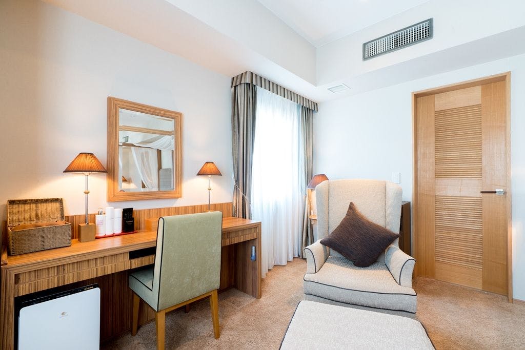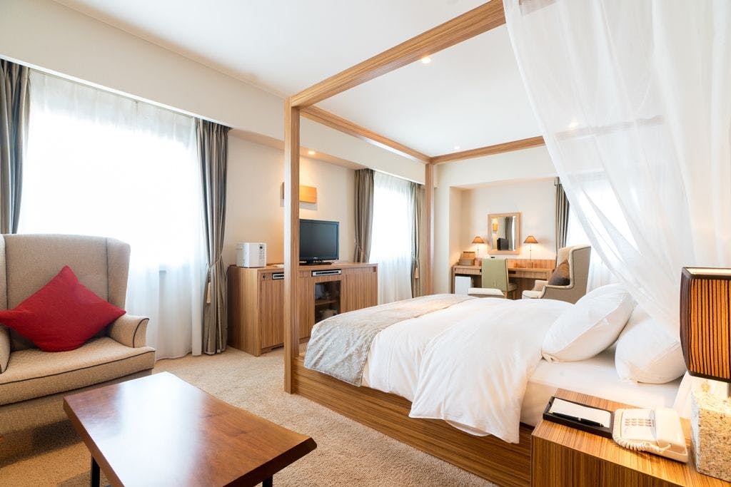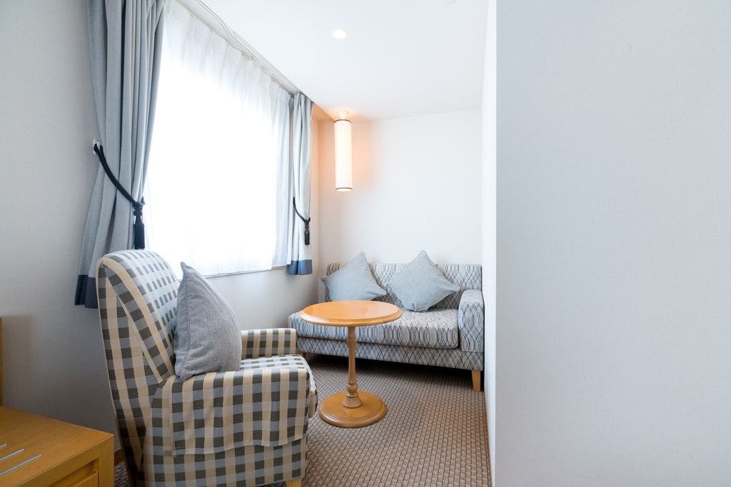 各階にひと部屋だけのソファ付角部屋デラックスツイン。