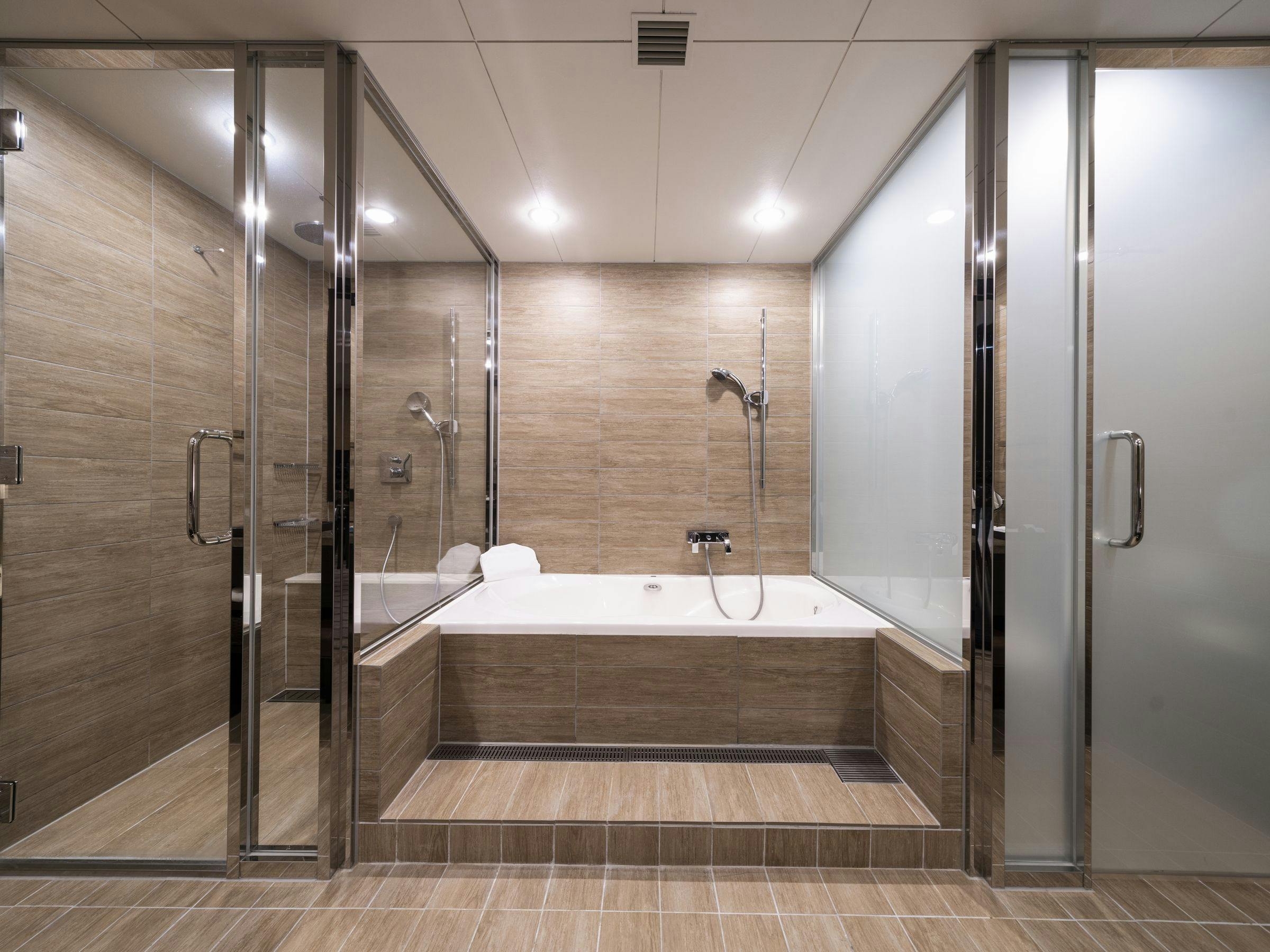 窓側にバスルームがあり、景色を眺めながらバスタイムをお過ごしいただけます。
