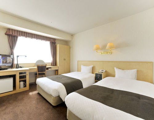 部屋の広さ22平米、ベッドサイズ200×114。WI-FI無料、液晶TV&VOD。全室に加湿機能付き空気清浄機。