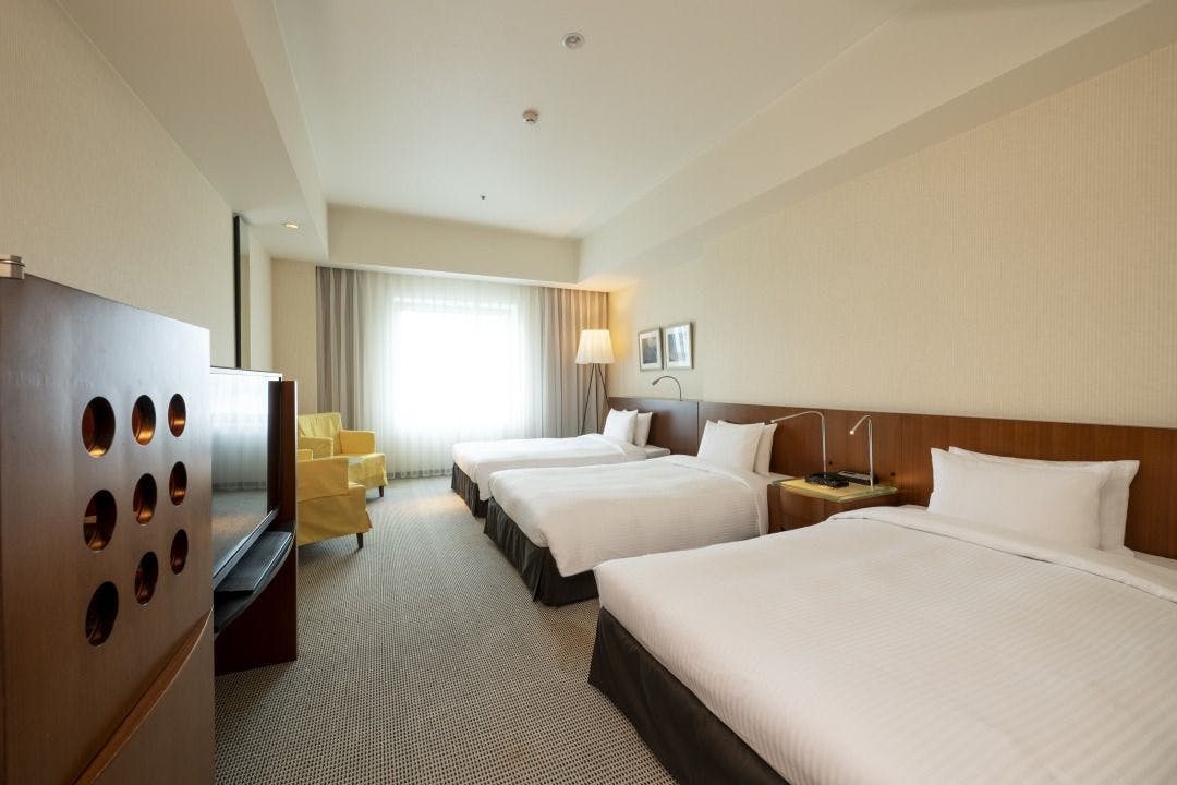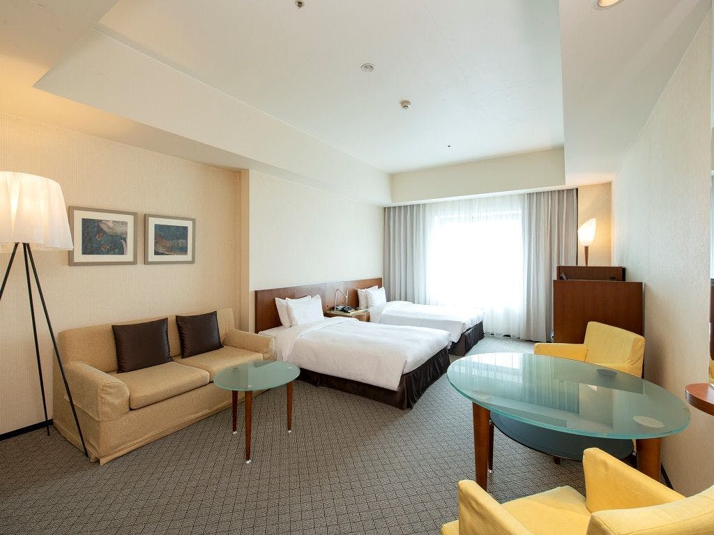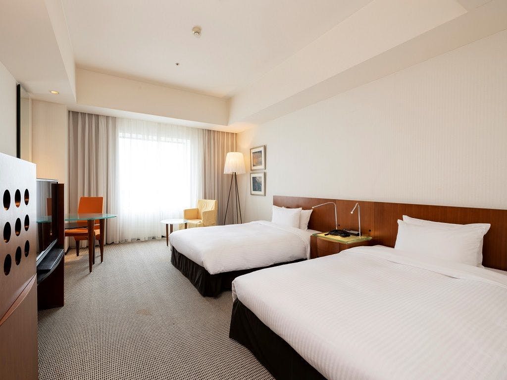 スタンダードタイプよりも、ひとまわり広い32平米のゆったりとしたツインルームです。3名様でのご利用時はベット1台が、エキストラベットとなります。抗ウイルス加工済の掛け布団と枕を使用しております。