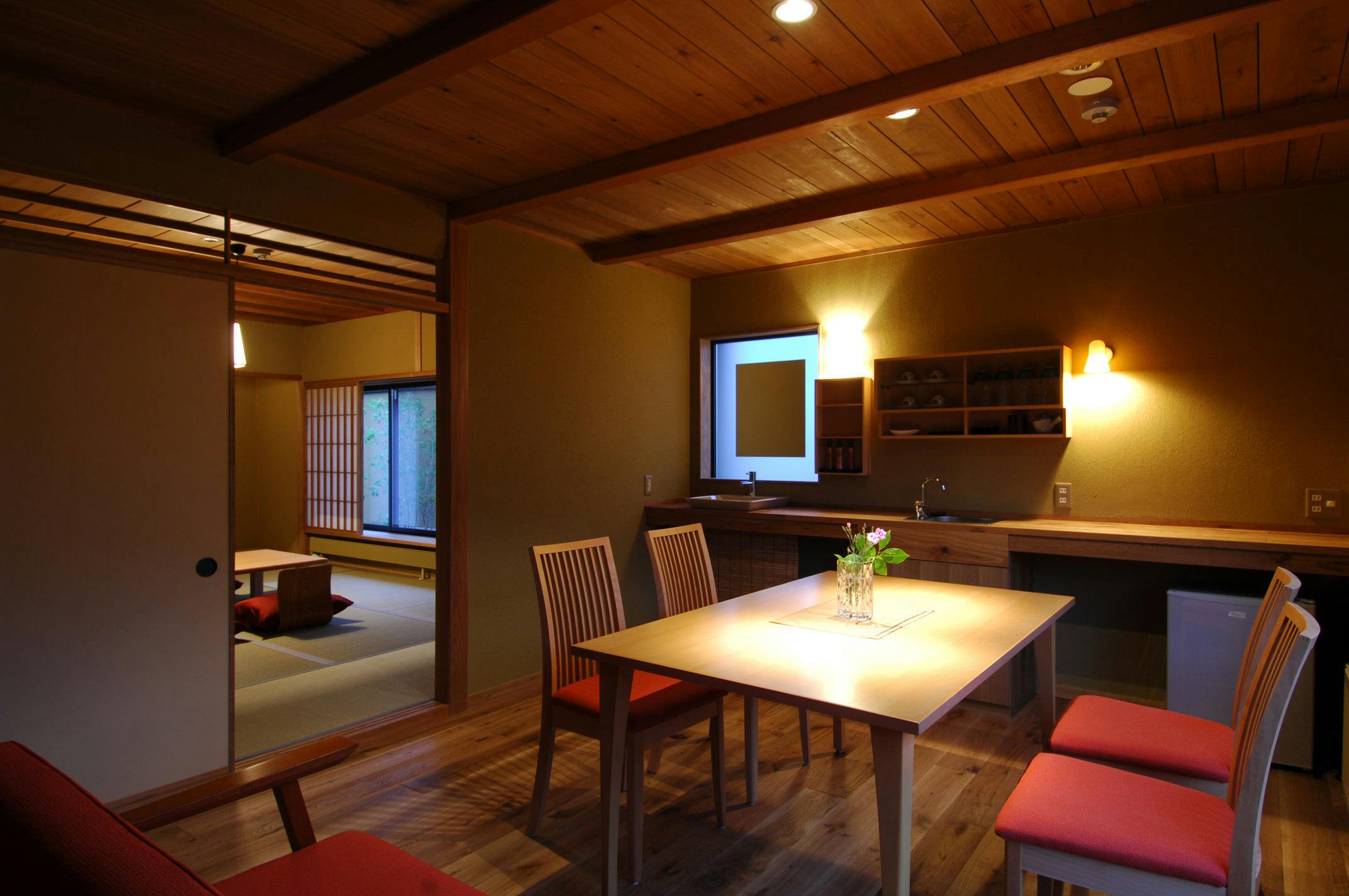 スタンダードのお部屋に6畳のミニキッチンがついたお部屋です。お部屋にはお風呂がついておりませんが、貸切風呂が予約なしで何時でもご利用いただけます。こちらをご利用下さいませ。