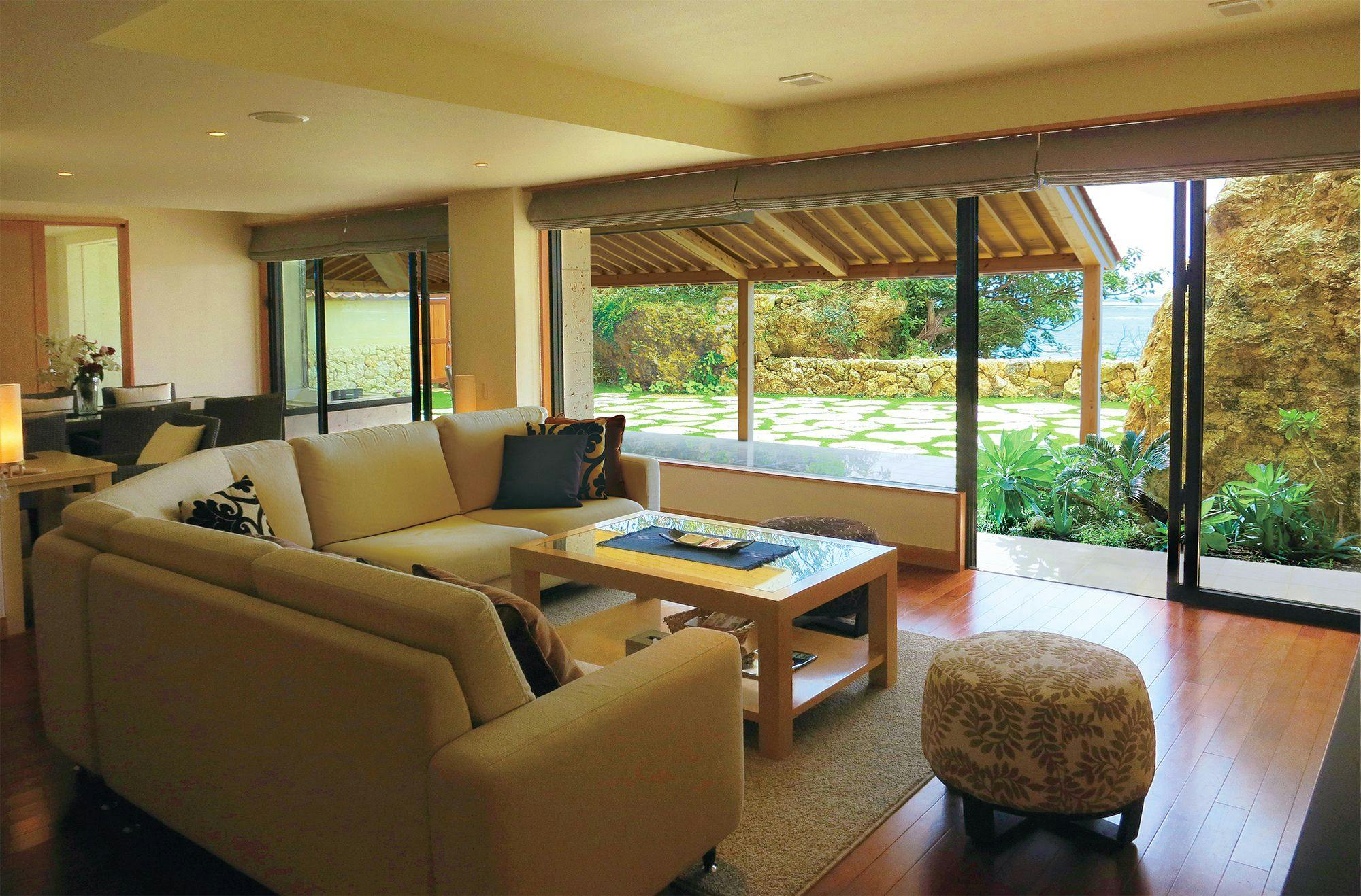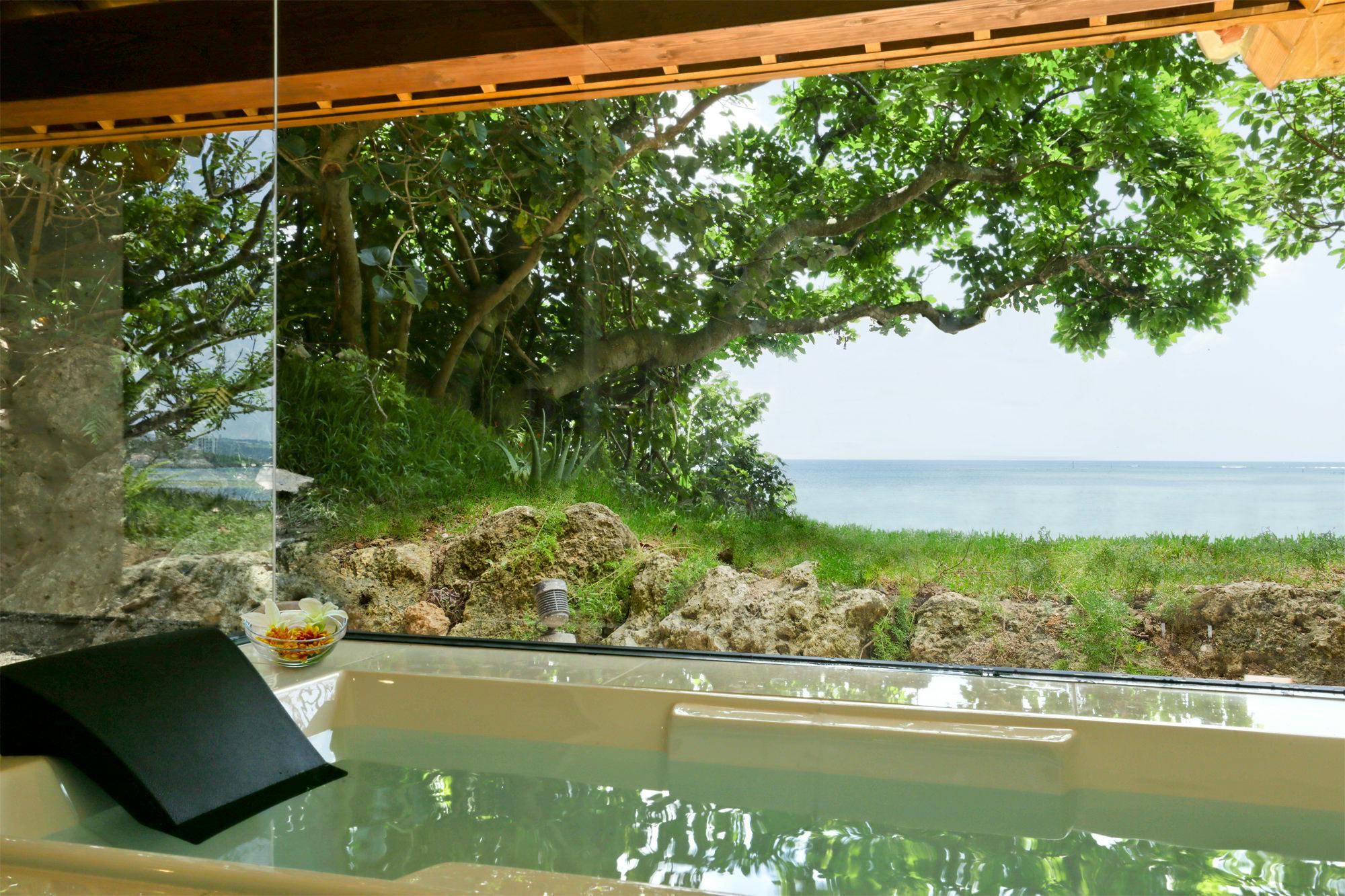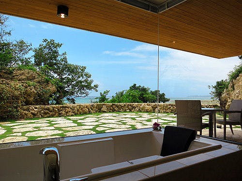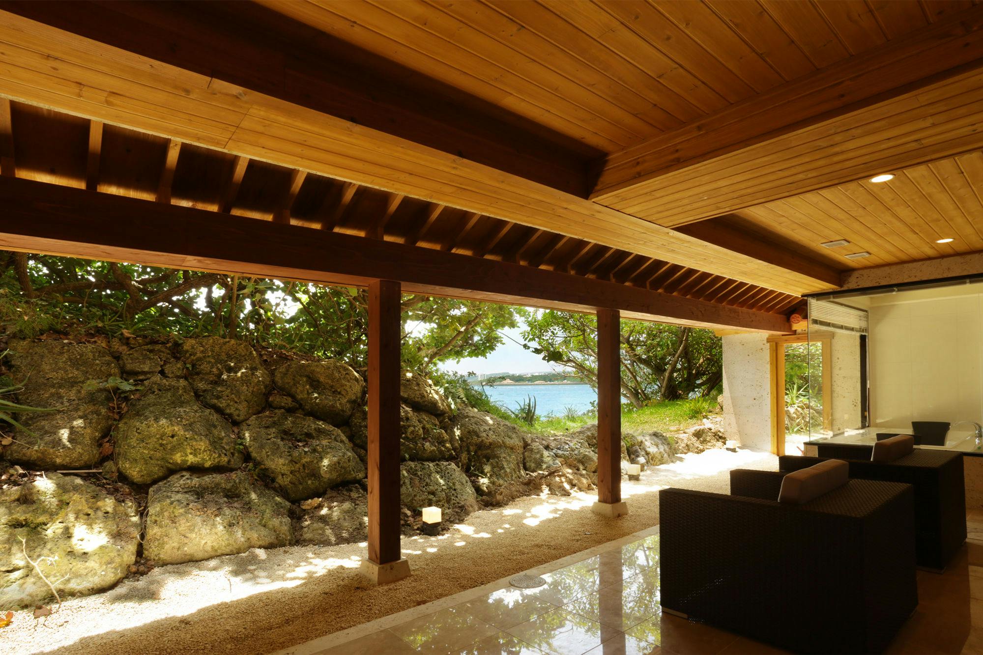 海と山が広がる岬の先端に位置する「百名伽藍」は、自然との融合を目指し、赤瓦や琉球石灰岩・チャーギなど沖縄の素材を用いた和琉様式の造り。高級旅館のような、豊かな情緒漂うリゾートホテルです。