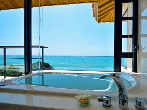 海側に広く伸びたバルコニーを抜けると専用テラスがあり、4階から望む景色は圧巻。