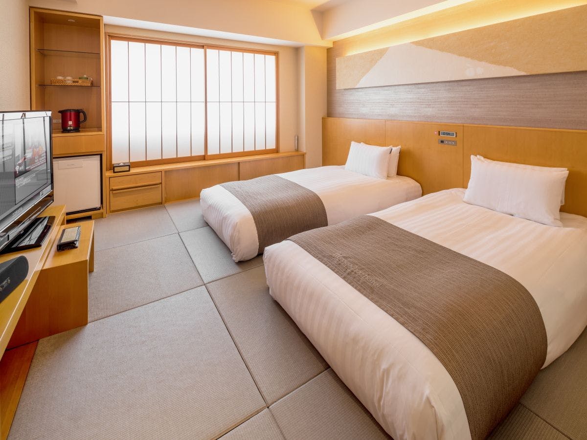 沼津駅北口より徒歩30秒。今までにないここち良さを提供する為、畳フロア、3点分離バス、ピロートップベッド、Wi-Fi無線LAN等を完備。高感度な旅行者の為のセレクトホテルです。