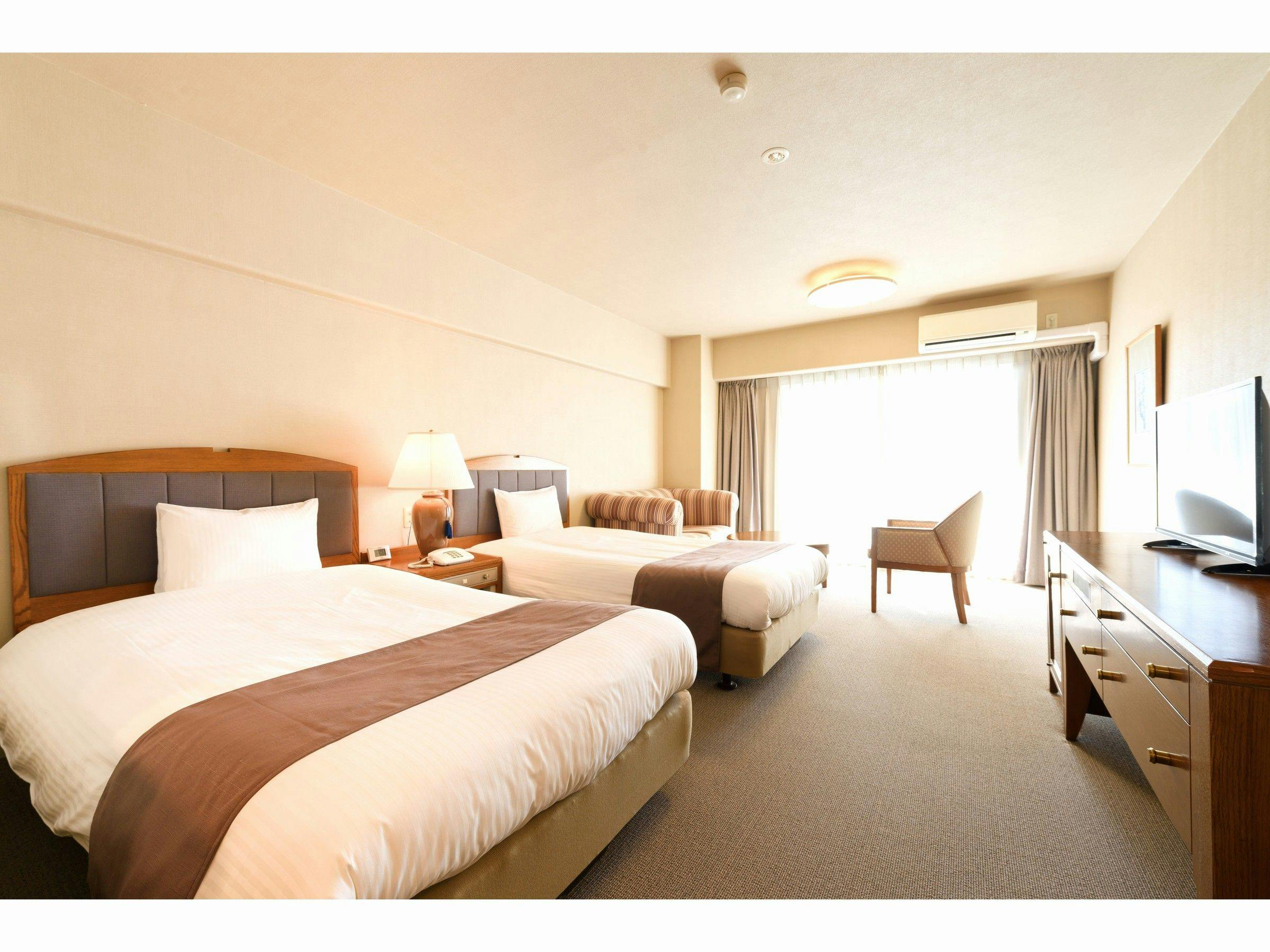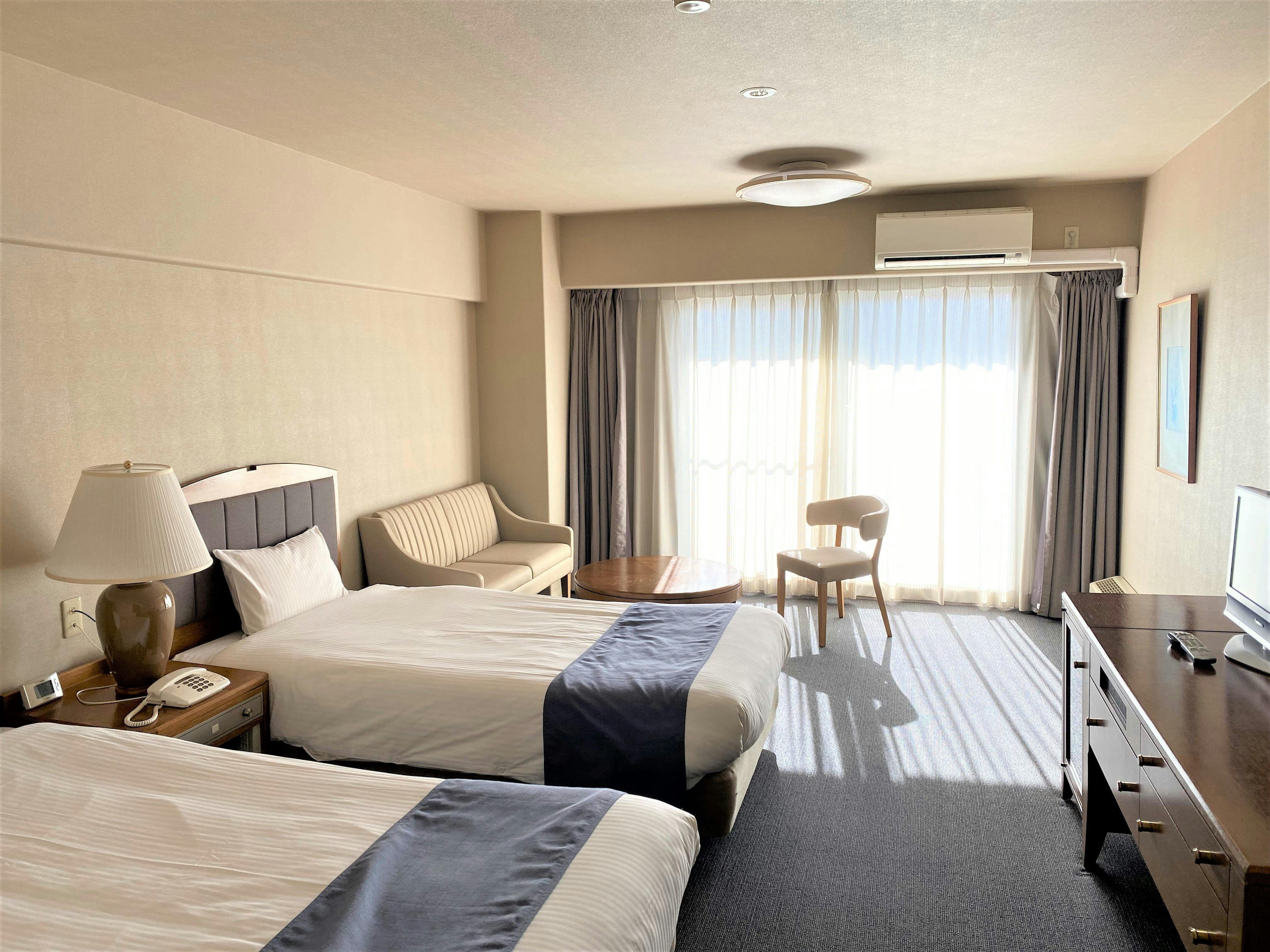 ゆったりとした作りのツインルーム。ご夫婦やカップルのご旅行に最適なお部屋です。写真とは異なる作りの場合もございます。(34平米もしくは40平米/指定不可)【ご案内】このタイプはワンフロアーに1室です。
