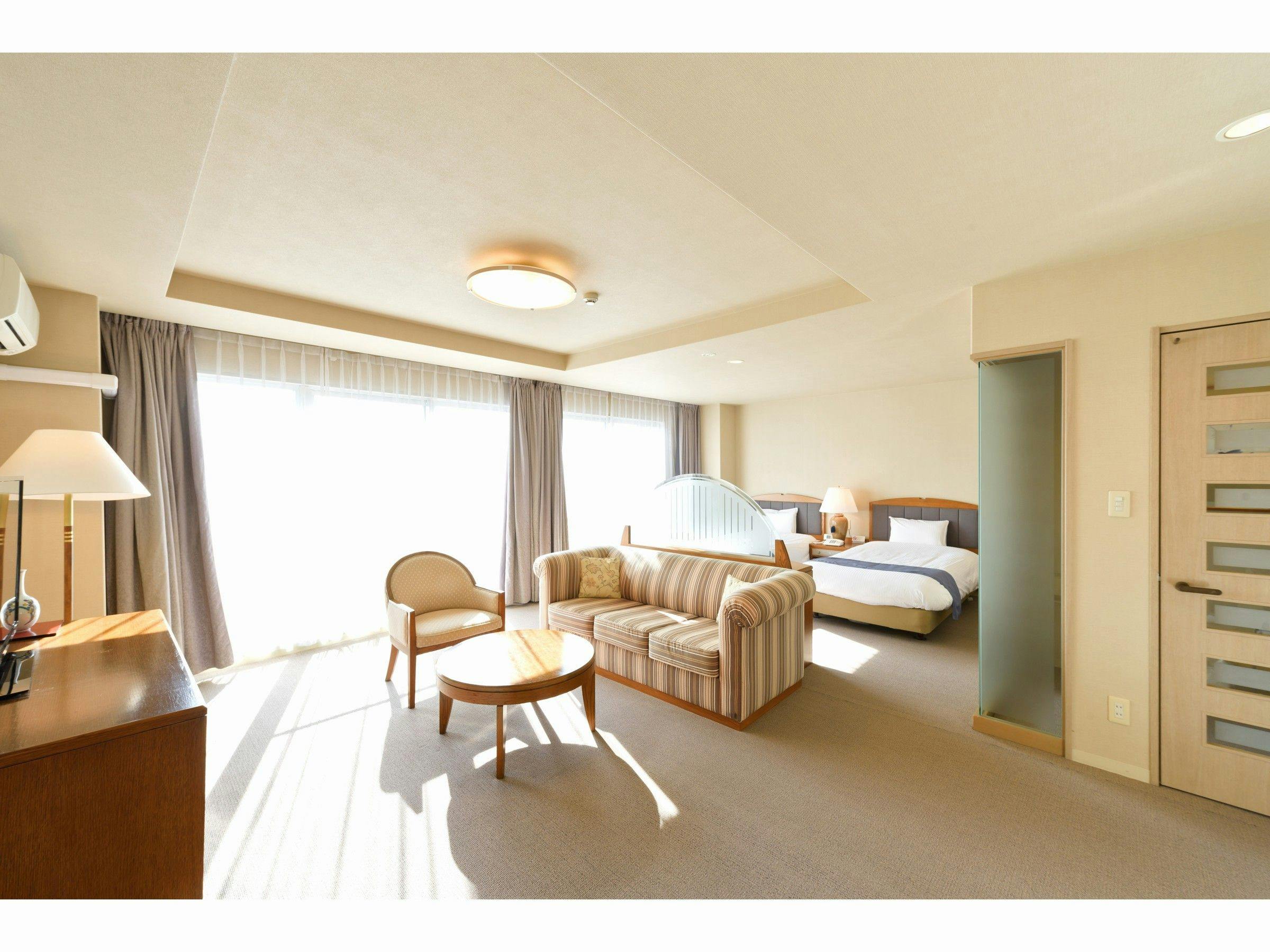 ワンランク上の居住空間を演出するスイートルーム。ゆったりとしたリビング&ベッドスペースと、スイートルームだからこそ出来る独立した和室が、プライベートな空間をご提供致します。ご家族やグループ旅行に最適なゲストルームです。