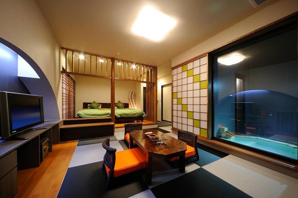 ●全7室趣が違うお部屋(お部屋タイプはお任せ下さい)●全客室露天風呂(半露天風呂)付き シャワーブース有り●全客室に四季の移ろいを望めるテラス付き●インドネシア産 陶器の洗面台●32型液晶テレビ●DVDデッキ ソフトは貸し出し有り(お気に入りDVDソフトはご持参ください)●冷蔵庫●加湿器●全室禁煙●夏場虫対策セット※3名様~利用時お布団を敷かせて頂きます。(笹谷の場合はエキストラベッド)