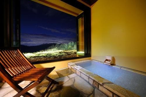 ●源泉掛け流しの露天風呂と半露天風呂がついた贅沢なお部屋●シャワーブース有り●四季の移ろいを望めるテラス付き●インドネシア産 陶器の洗面台●32型液晶テレビ●DVDデッキ ソフトは貸し出し有り(お気に入りDVDソフトはご持参ください)●冷蔵庫●加湿器●全室禁煙●夏場虫対策セット