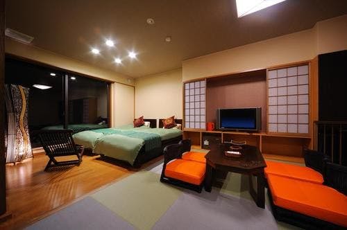 ●源泉掛け流しの露天風呂と半露天風呂がついた贅沢なお部屋●シャワーブース有り●四季の移ろいを望めるテラス付き●インドネシア産 陶器の洗面台●32型液晶テレビ●DVDデッキ ソフトは貸し出し有り(お気に入りDVDソフトはご持参ください)●冷蔵庫●加湿器●全室禁煙●夏場虫対策セット※3名様~利用時お布団を敷かせて頂きます。
