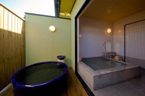 温泉の内風呂(石造り)、露天風呂(陶器風呂)を一部屋毎に2つご用意しております。