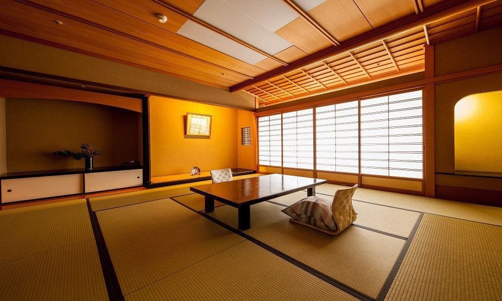 湖と庭園を望む和室大部屋です。お部屋の広さは踏込み+本間12~15畳+次の間6~8畳となります。ワイワイとグループにも最適です。【イメージ】