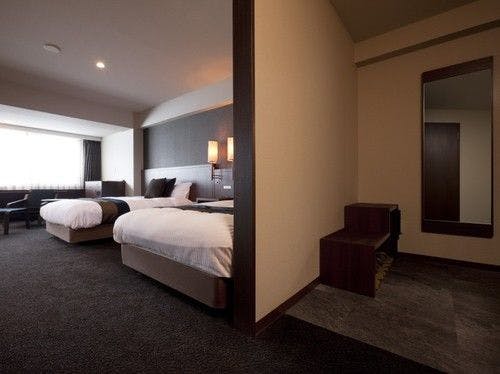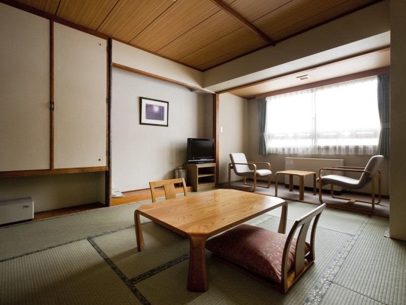 登別温泉地区では、当館のみ!シモンズ製ベット4台設置。更に和室スペースも10畳の広さ