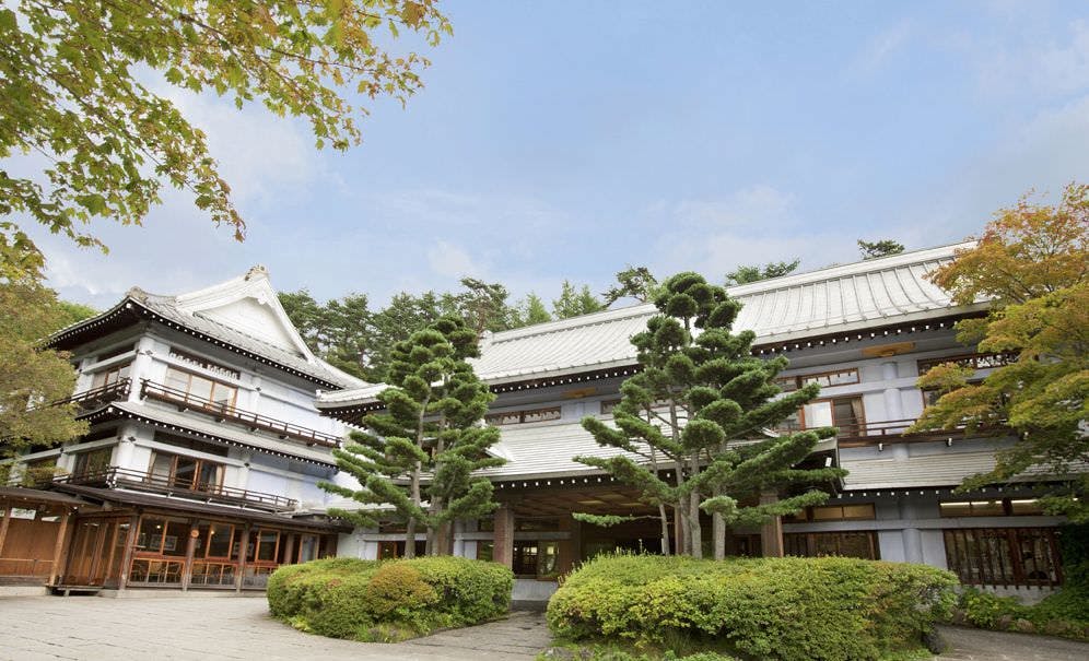 草津ホテルの庭園に面した本棟、または西の河原公園を望む西棟のいずれか※添い寝のお子様も含め、小学生以下のお子様のご宿泊はいただけません。