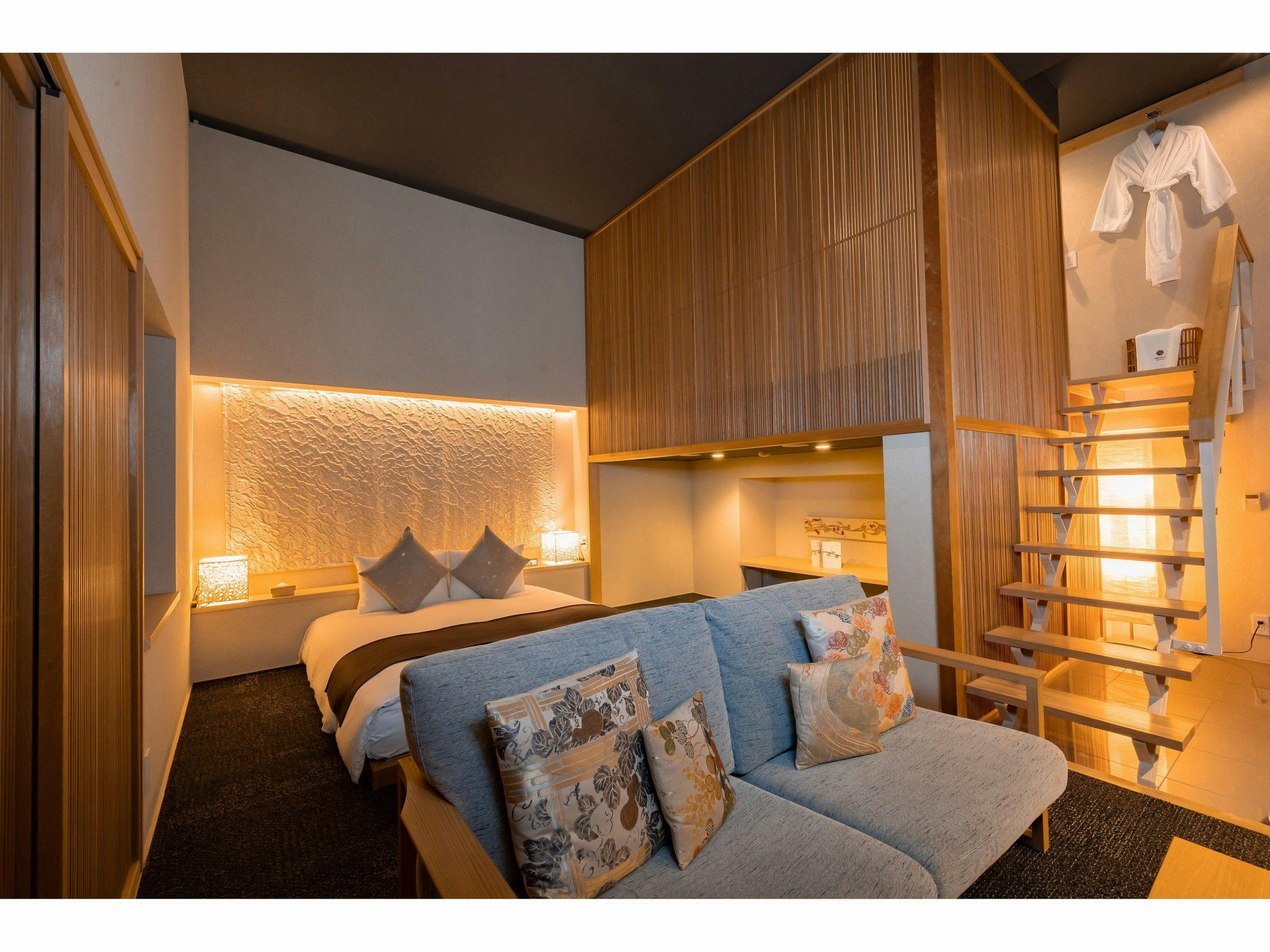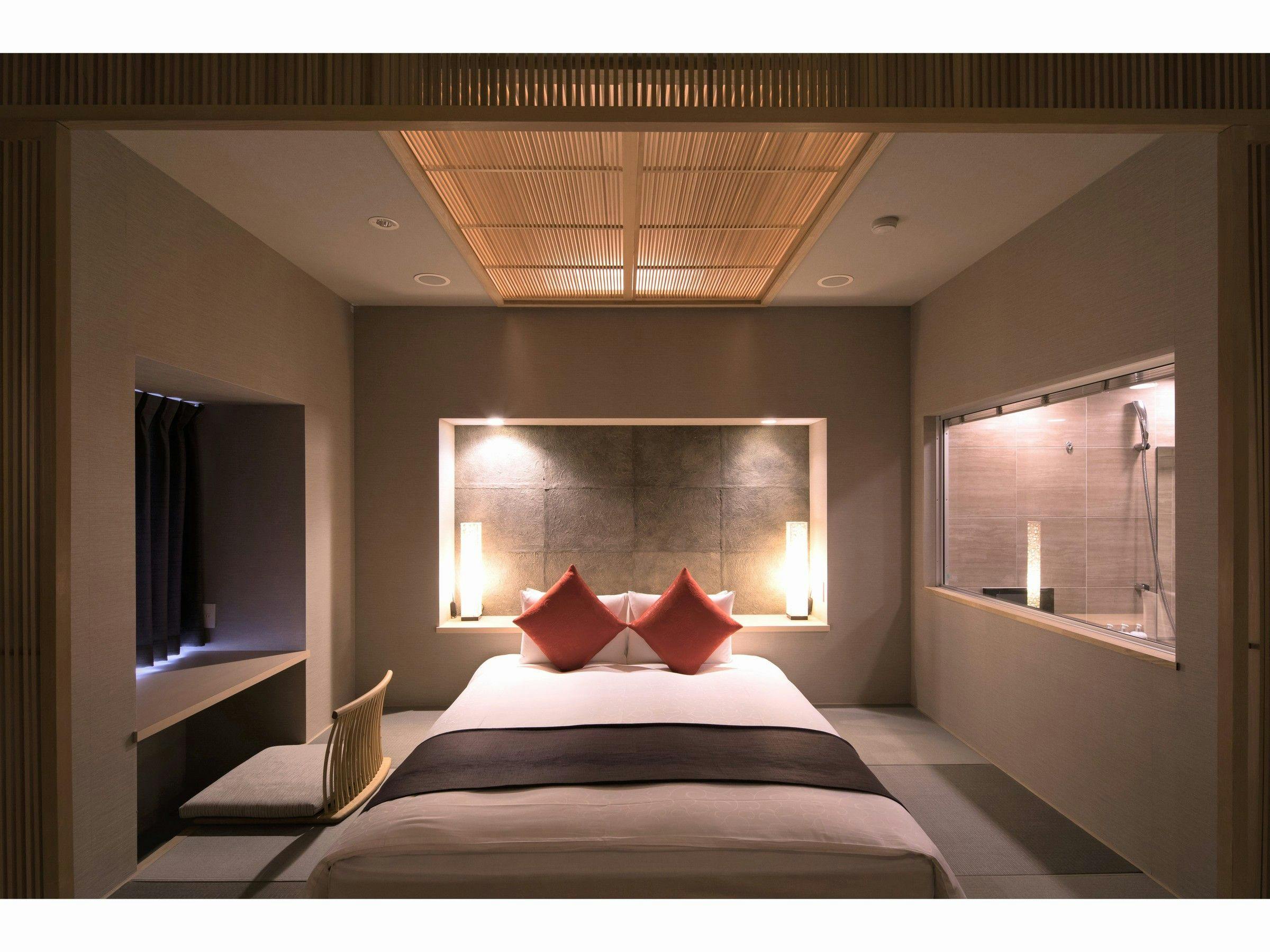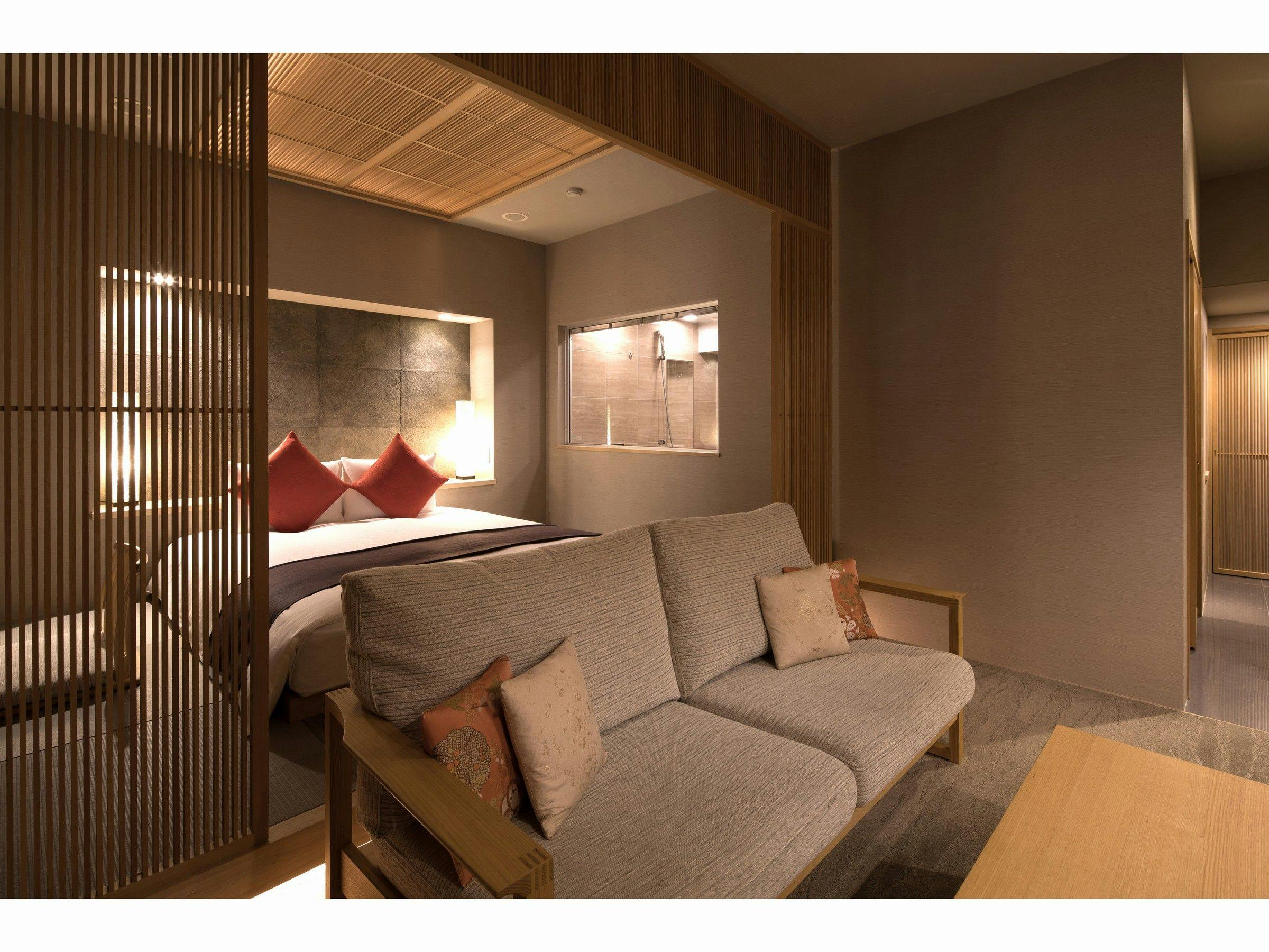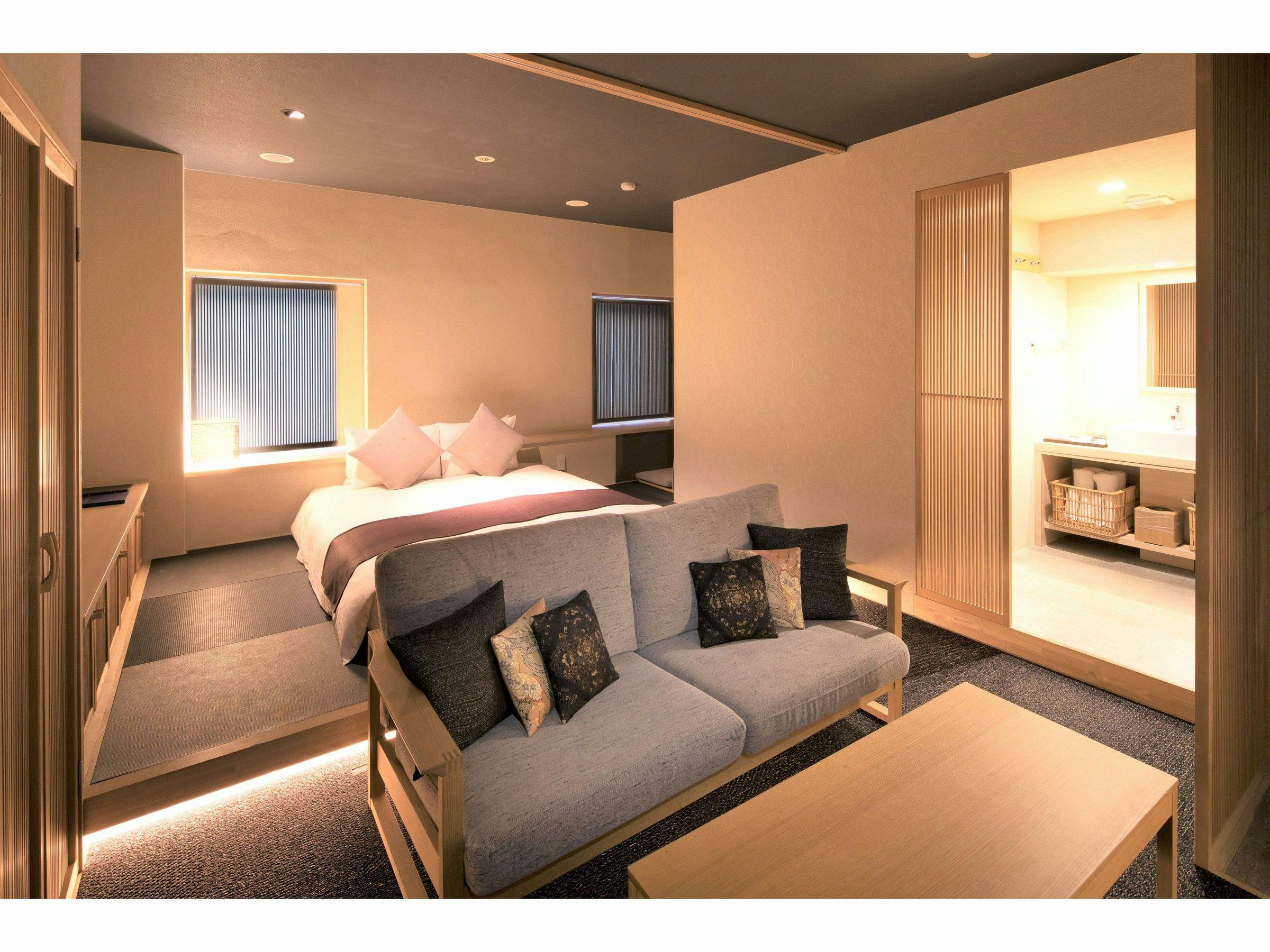 45m2の広さを誇るジャパニーズモダンルーム禅、解放的な空間と贅沢な広さの中に三畳の茶室を備えたお部屋。都会の真ん中にありながら檜風呂を備え、日本の思想である「禅」を表現した趣のある空間です。また全ての客室で窓の開閉が可能。エアコンも個別空調となっております。