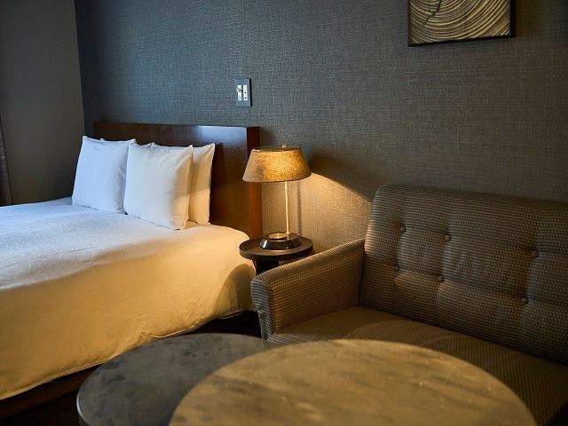 ■全ての客室で窓の開閉が可能。エアコンも個別空調となっております。都会の喧騒を忘れられる23平米の広さの静寂な空間。幅160cmのクイーンサイズベッドと二人掛けのソファをご用意し、おくつろぎいただけるお部屋です。
