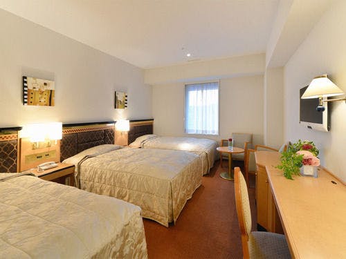 26.2平米のお部屋に1,200mmのシモンズ製、正ベッドを3台ご用意したトリプルルームです。六甲山をバックに神戸駅の夜景をお楽しください。