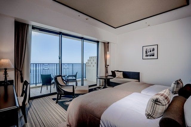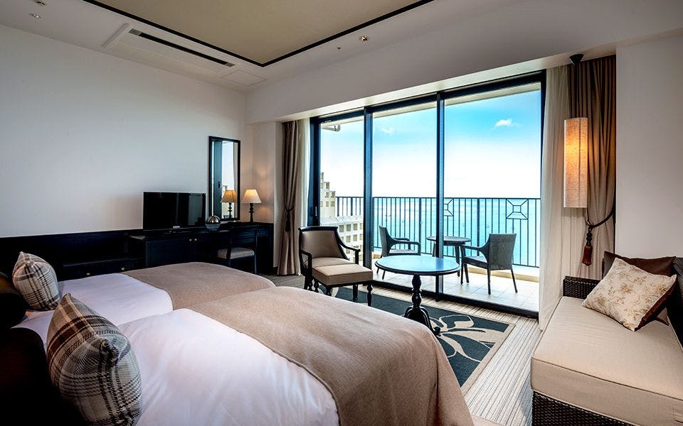 各フロアに1室ずつ設けたコーナータイプの客室は、角部屋ならではの広範囲の眺望とゆったりとしたお部屋の広さでくつろぎのリゾート空間を演出します。