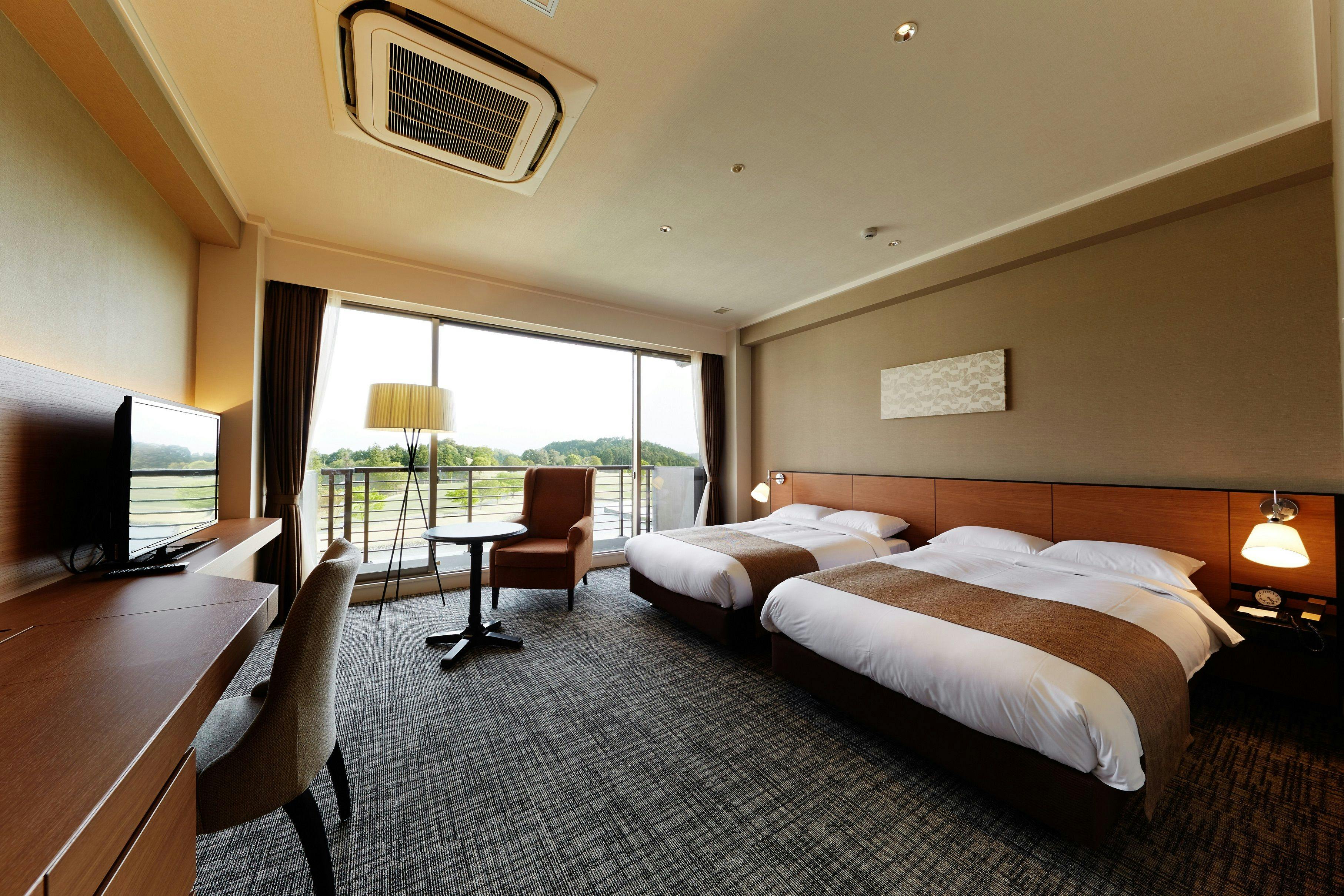 上質で清潔感のある室内空間が特徴的なツインルームです。室内にはセミダブルベッドを二台配備。全ての客室にて、邦画・洋画など150タイトル以上の映画を無料でお楽しみ頂けます。映画のタイトルは毎月最新タイトルに更新されます。大浴場では、清少納言も愛した名湯「榊原温泉」の湯を心行くまでご堪能頂けます。