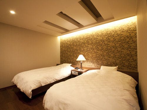 寝室にはベッドを2台配しており、チェックイン時からご利用いただけます。(3名様目からは夜、和室部分にお布団を敷かせていただきます。)