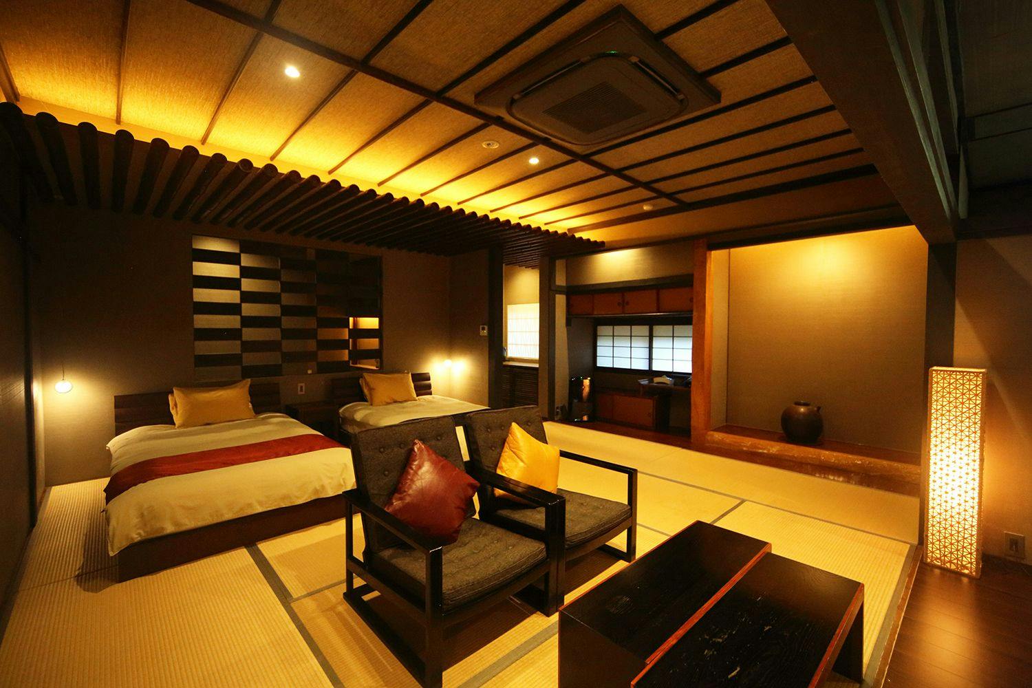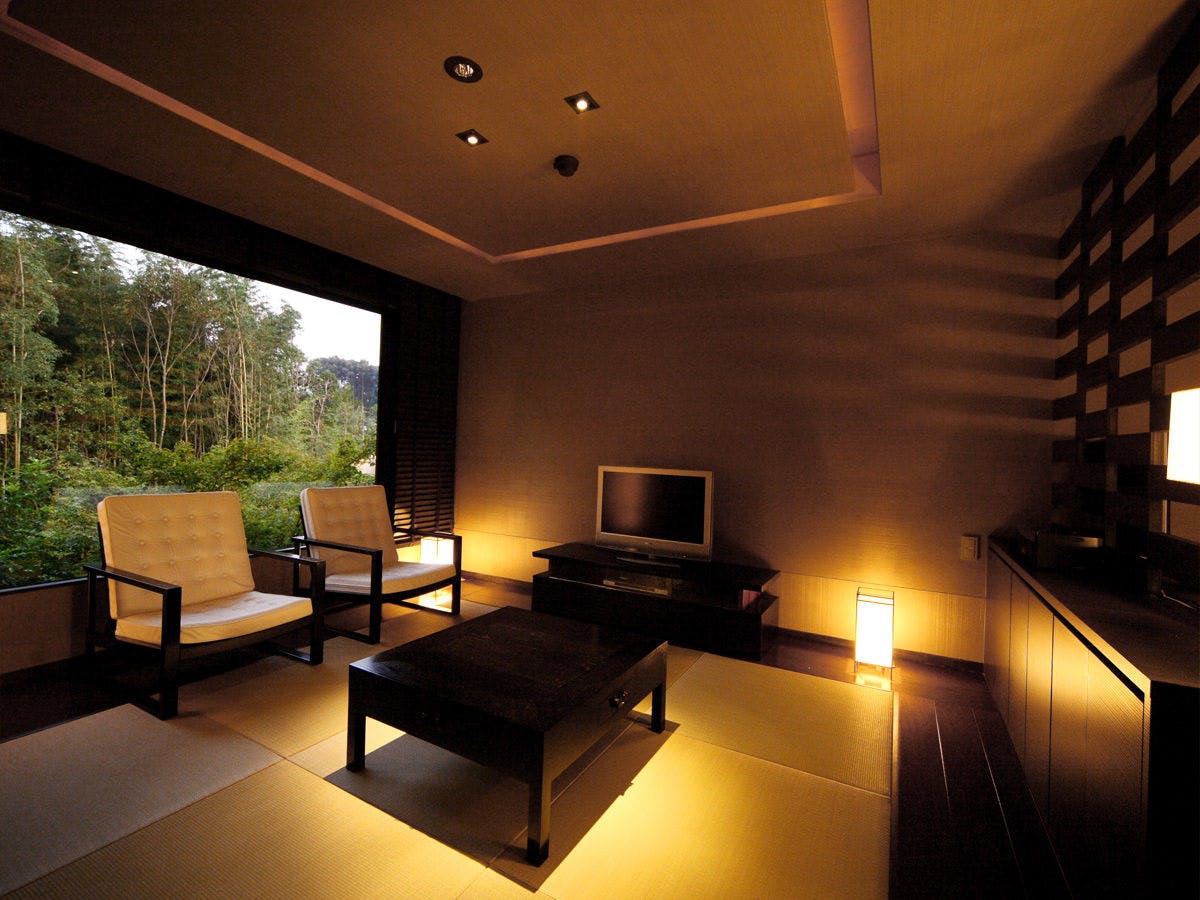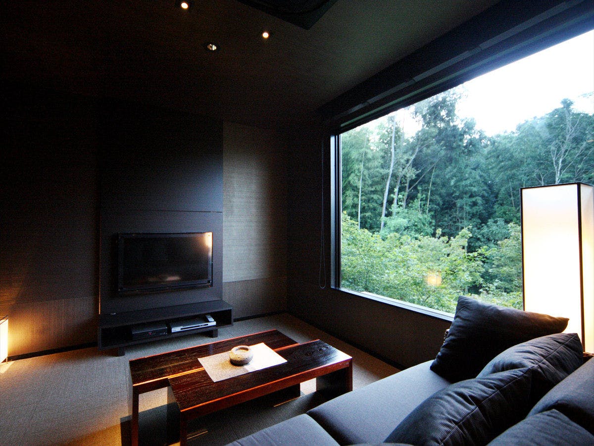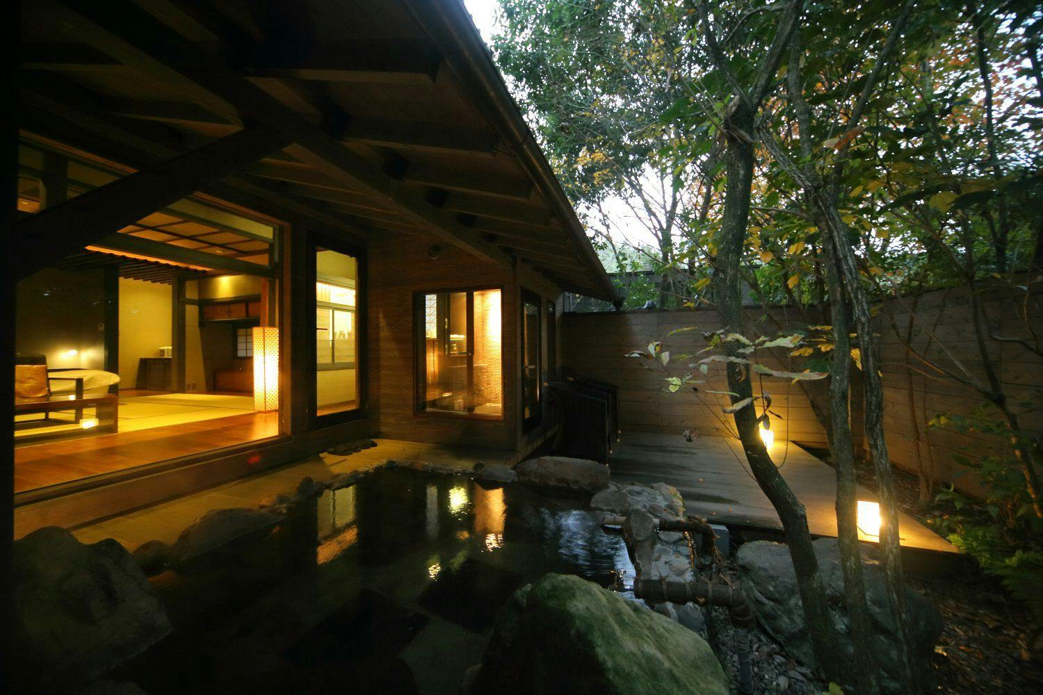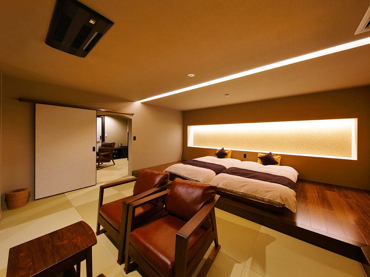 野天風呂(源泉かけ流し)、内風呂、リビング、ツインベッド
