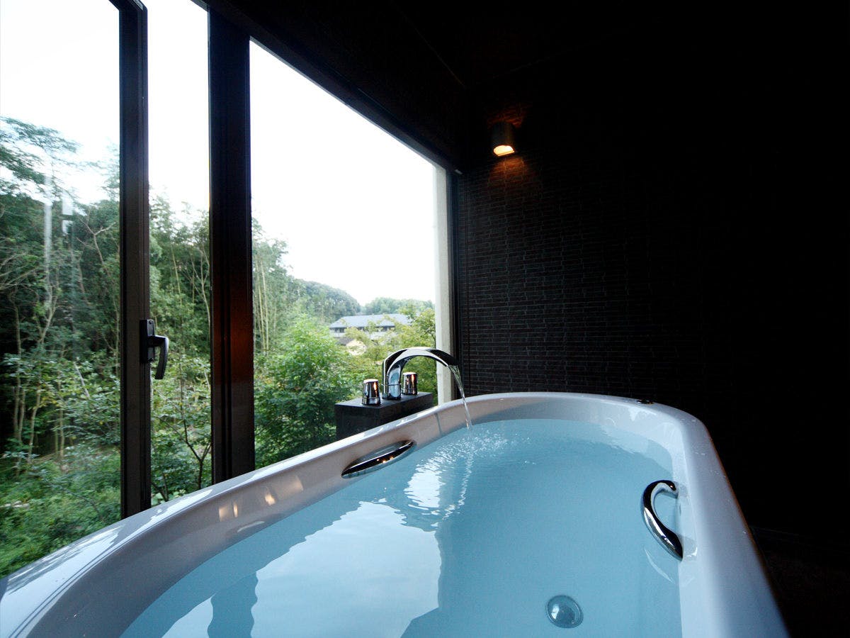 こちらのお風呂は、室内にございますが“開放感”はまるで露天風呂のよう